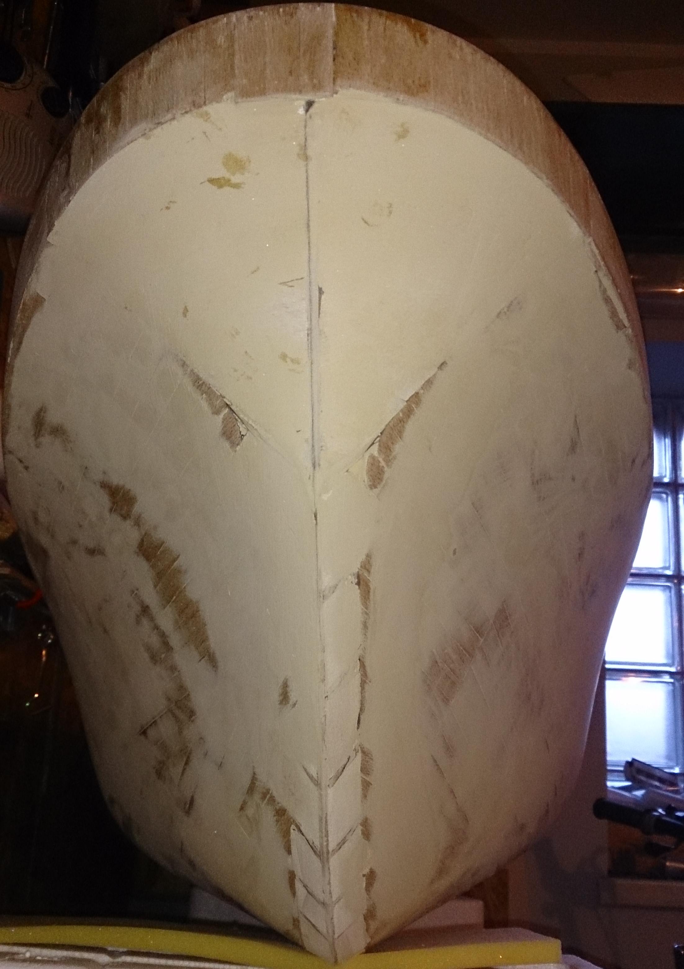 Zobaczymy jakie należy należy nanieść poprawki przy próbie montażu. Jak będzie ok to zrobię lewą burtę. Wyszlifowany kadłub pod żywicę i laminat.