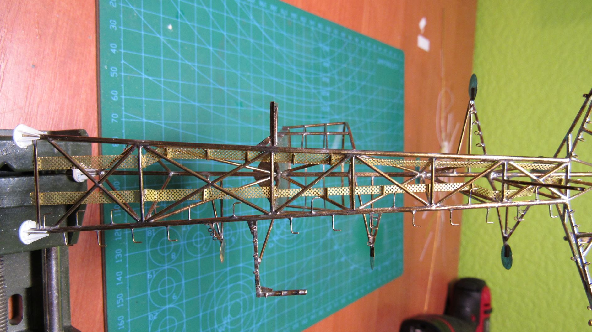 Zamontowałem tory kablowe na maszcie, wykonane z blaszki fototrawionej.