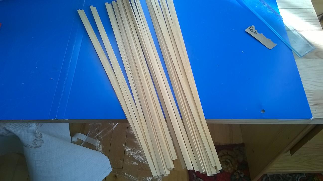 Klei się je według opracowania na mijankę, ale nie do końca. Tam gdzie listewki miały się łączyć w lini prostej przerobiłem to i łączyłem schodkowo. Drugie poszycie ukończyłem. Efekt jest taki jak na zdjęciach.