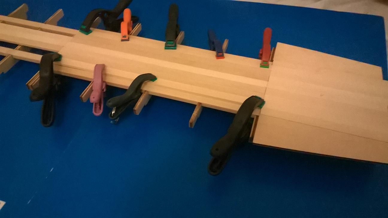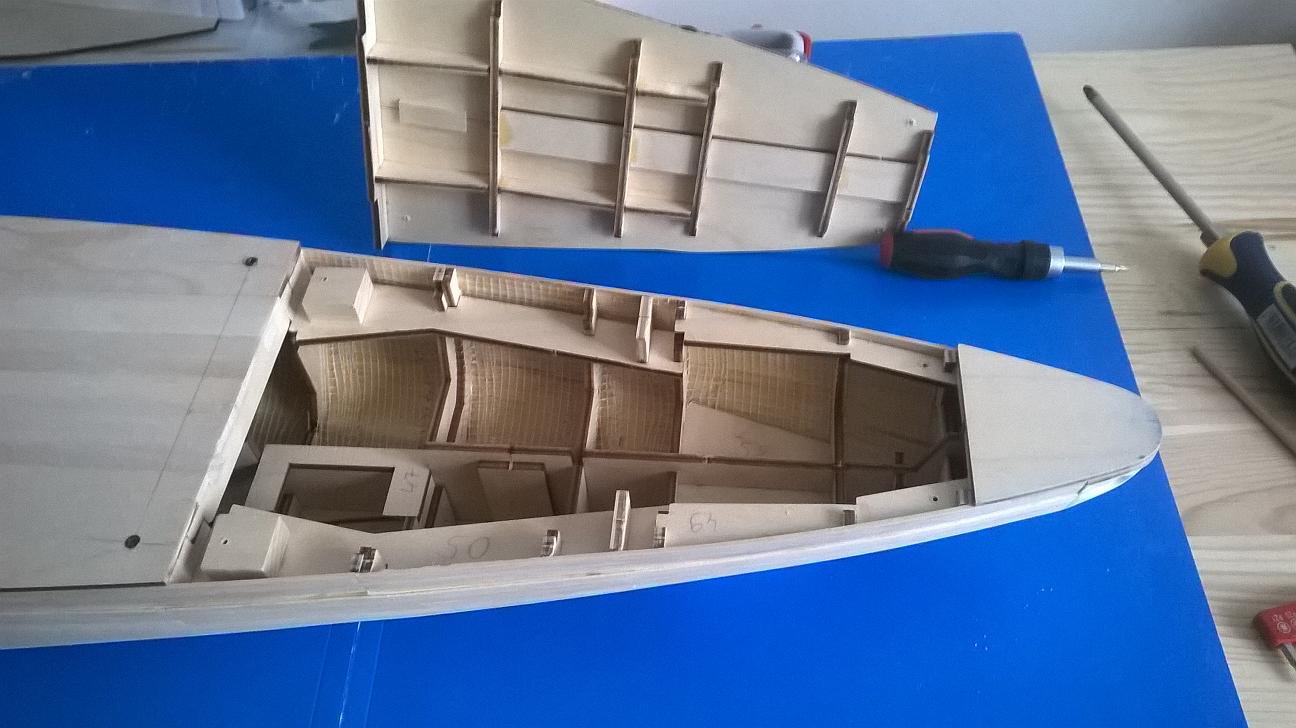 . Po pierwsze to wzmocniłem pierwszą warstwę poszycia. Troszkę zastanawiałem się czym ją wzmocnić i ostatecznie zrobiłem to tasiemką z włókna szklanego, tak jak radził Marcin. Oto rezultaty :