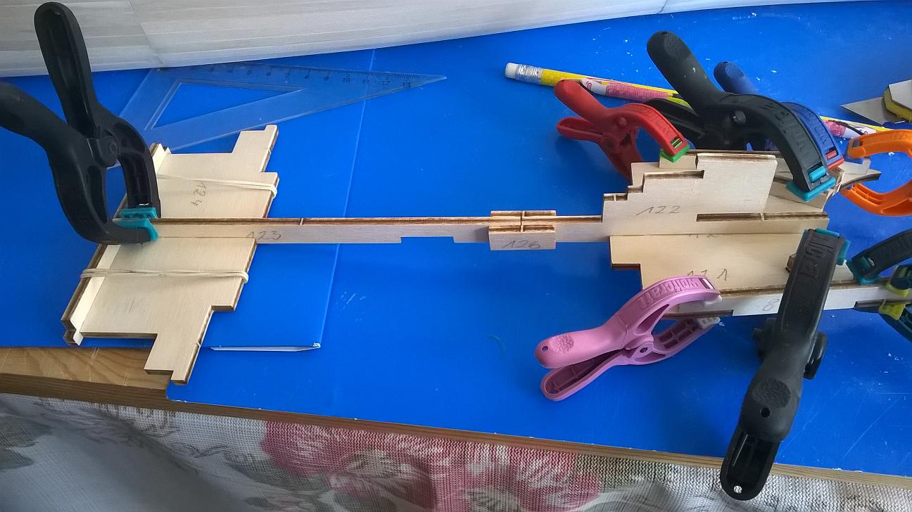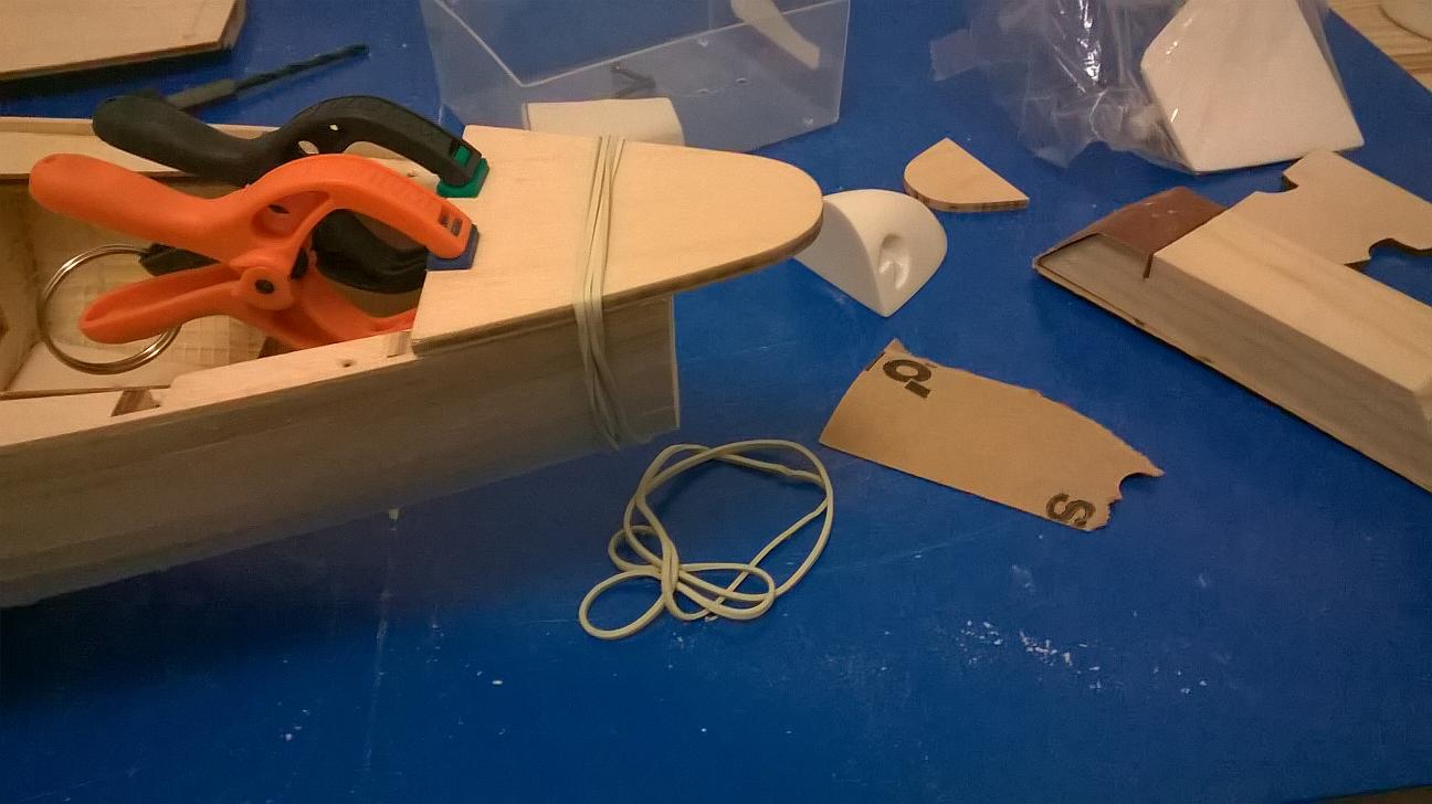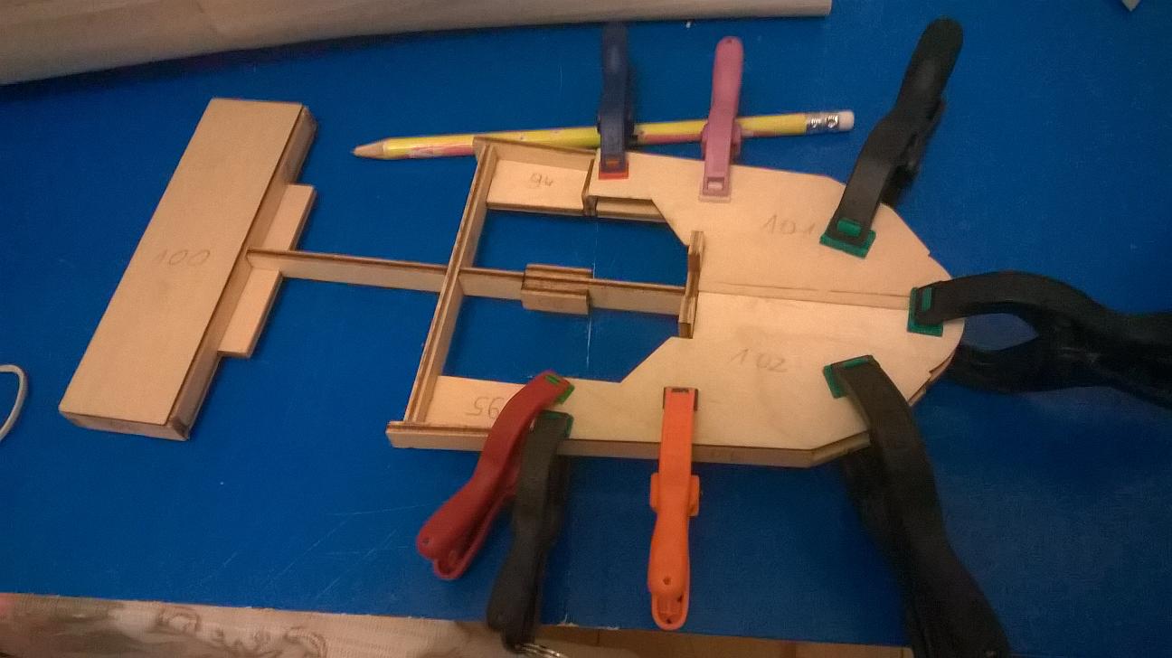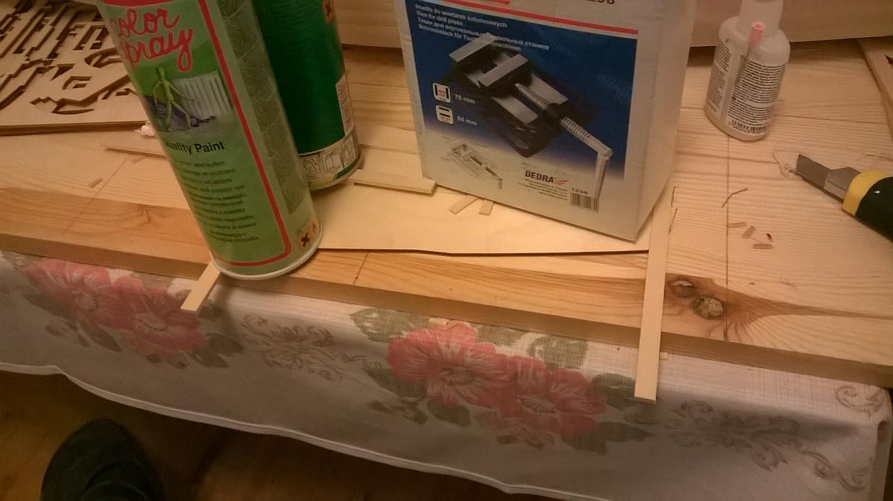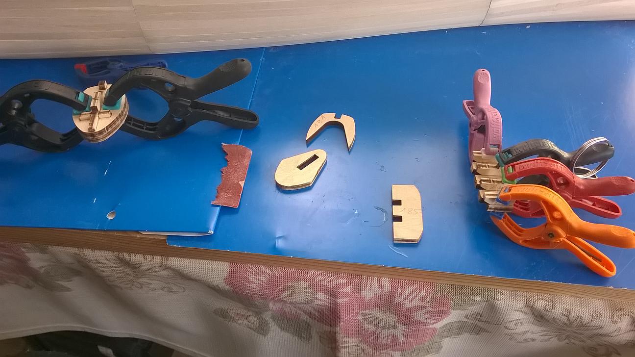 Wyszlifowałem małą część ze sklejki nieco inaczej niż w instrukcji i przykleiłem oba elementy: