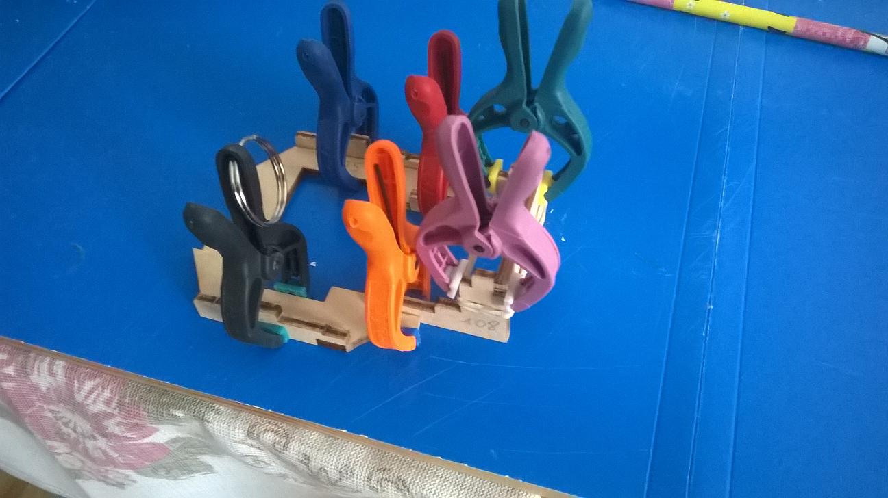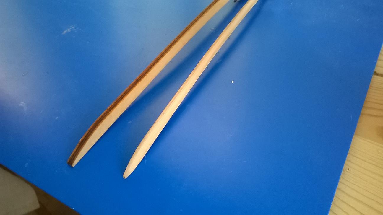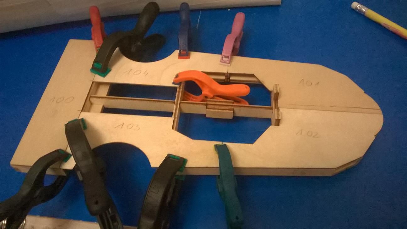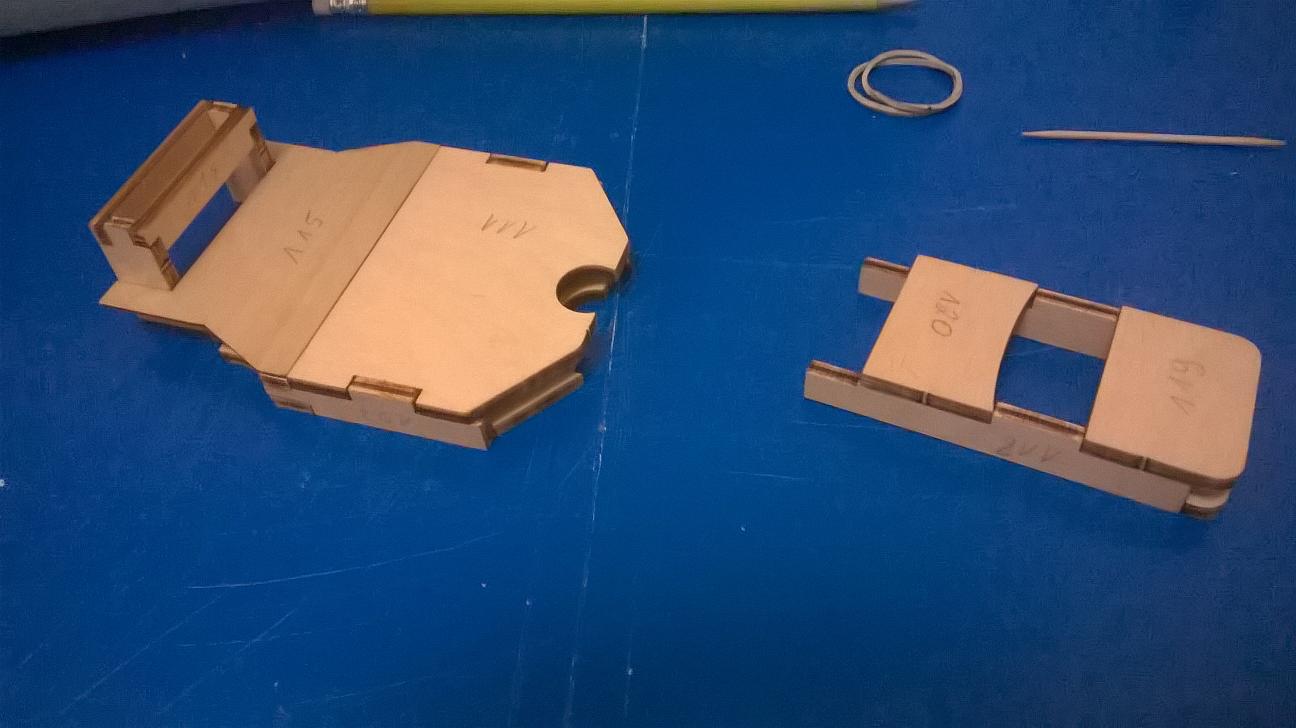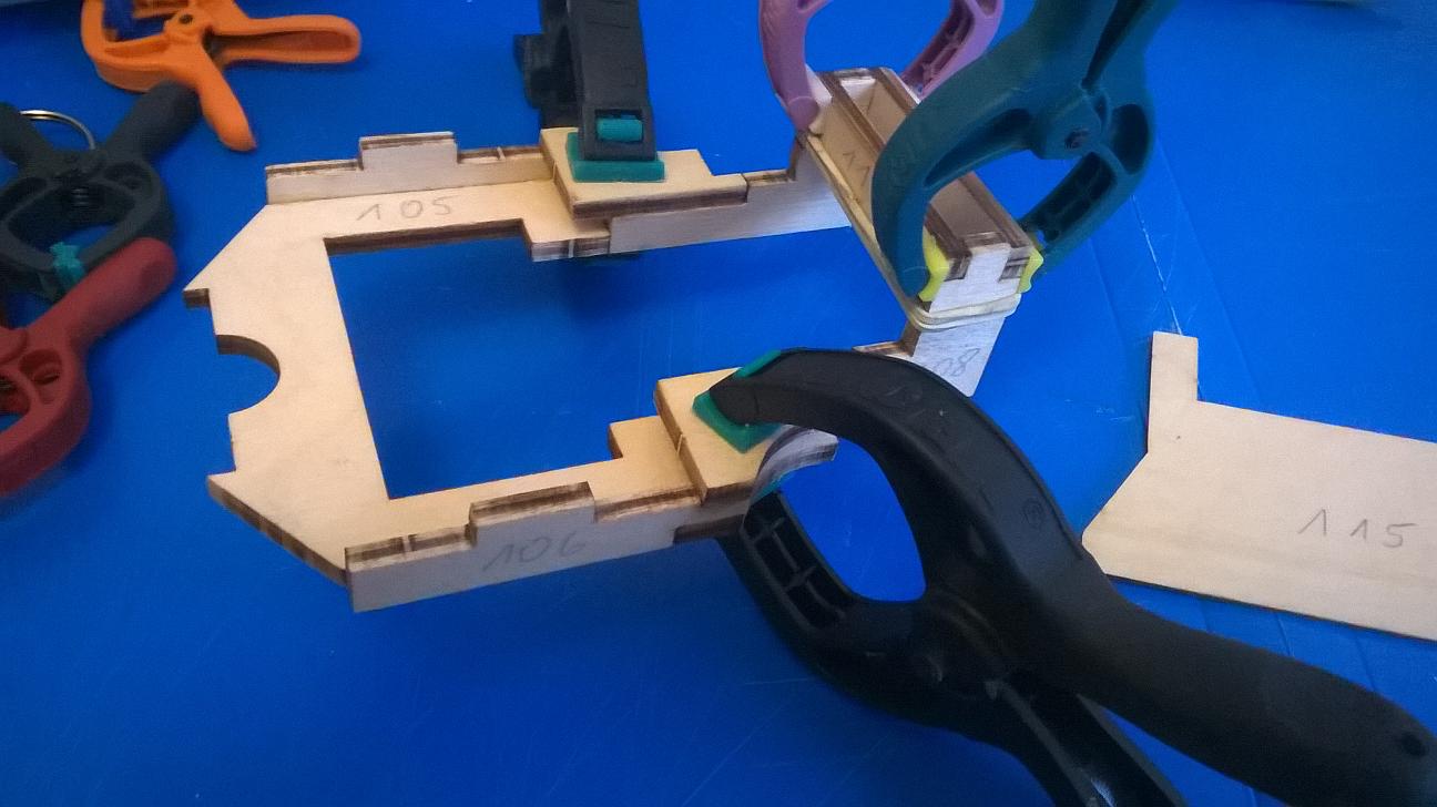 Wyszlifowałem małą część ze sklejki nieco inaczej niż w instrukcji i przykleiłem oba elementy: