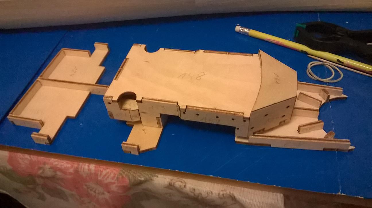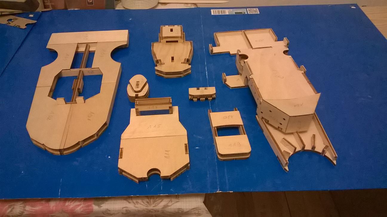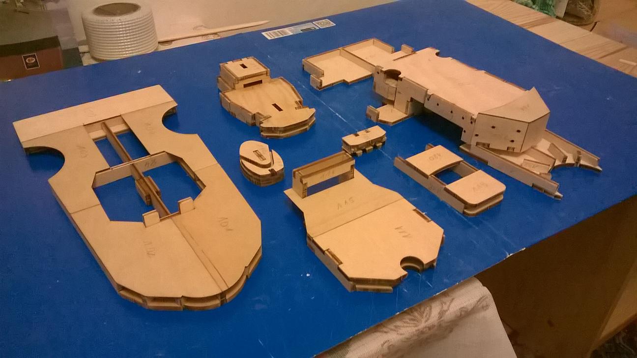 Kolejną rzeczą za jaką się wziąłem, to te części ze sklejki z otworami iluminatorów: