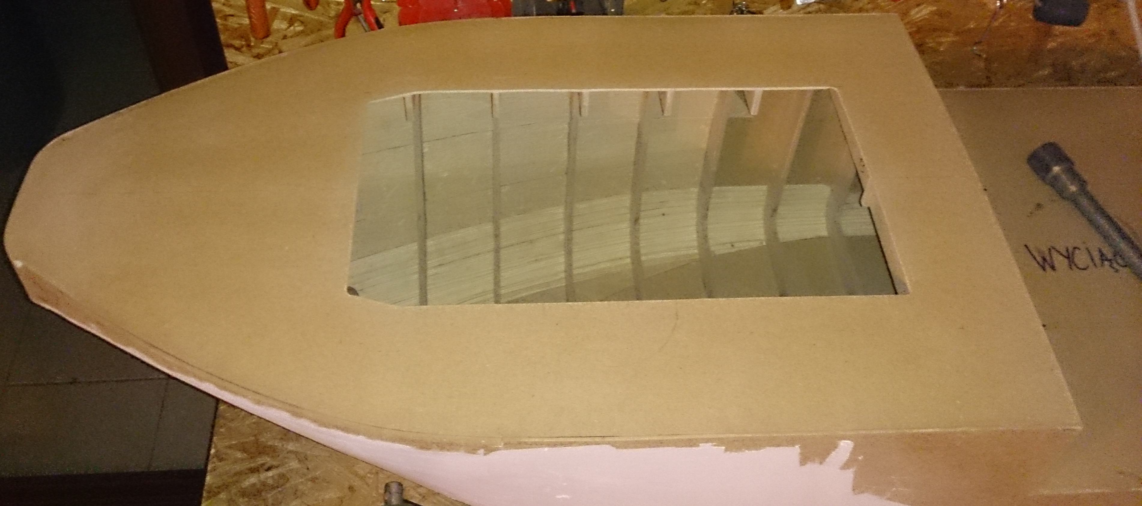 został do wycięcia i obramowania środkowy. Póki co produkuje się maszt dziobowy i jego zamocowanie.