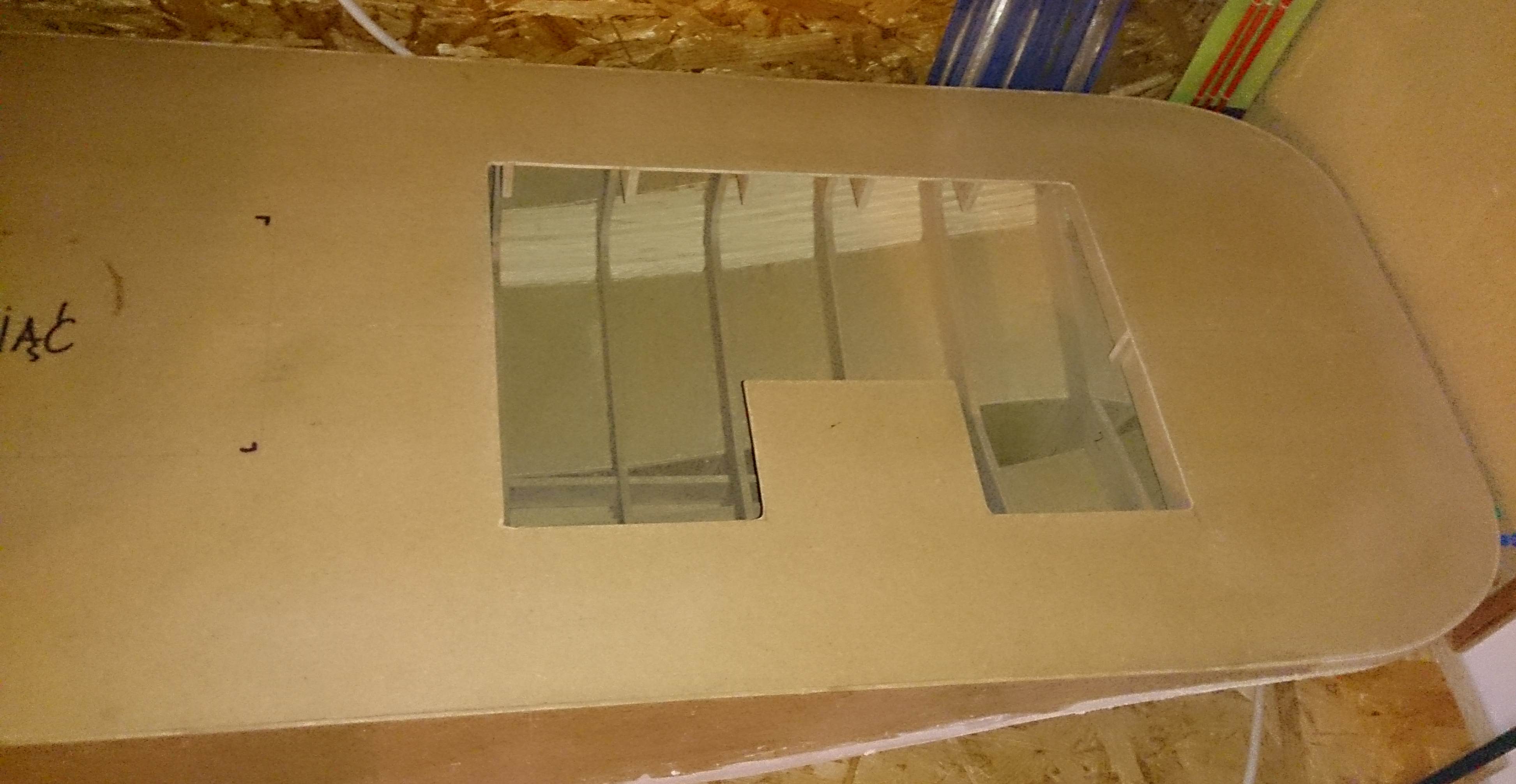 Wycięte otwory na osprzęt.