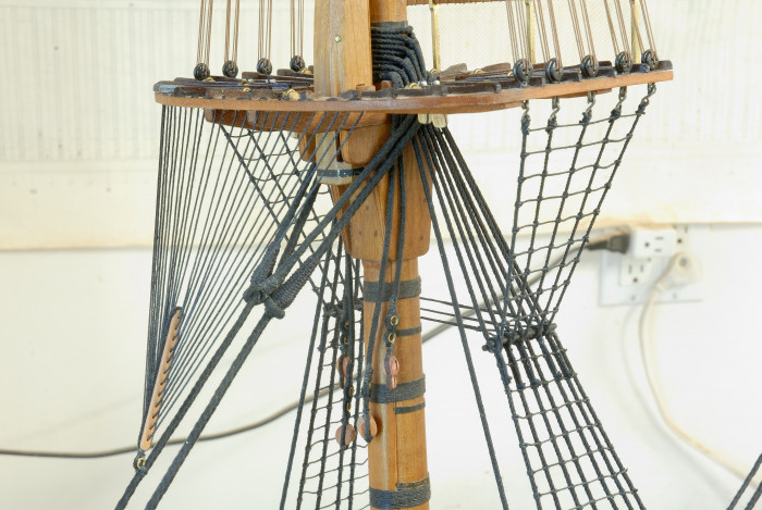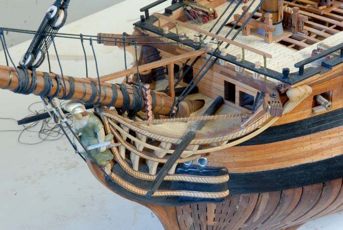 Niewielki postep prac przy olinowaniu stalym. Baksztagi, tudziez olinowanie gornych pieter masztow, etc...