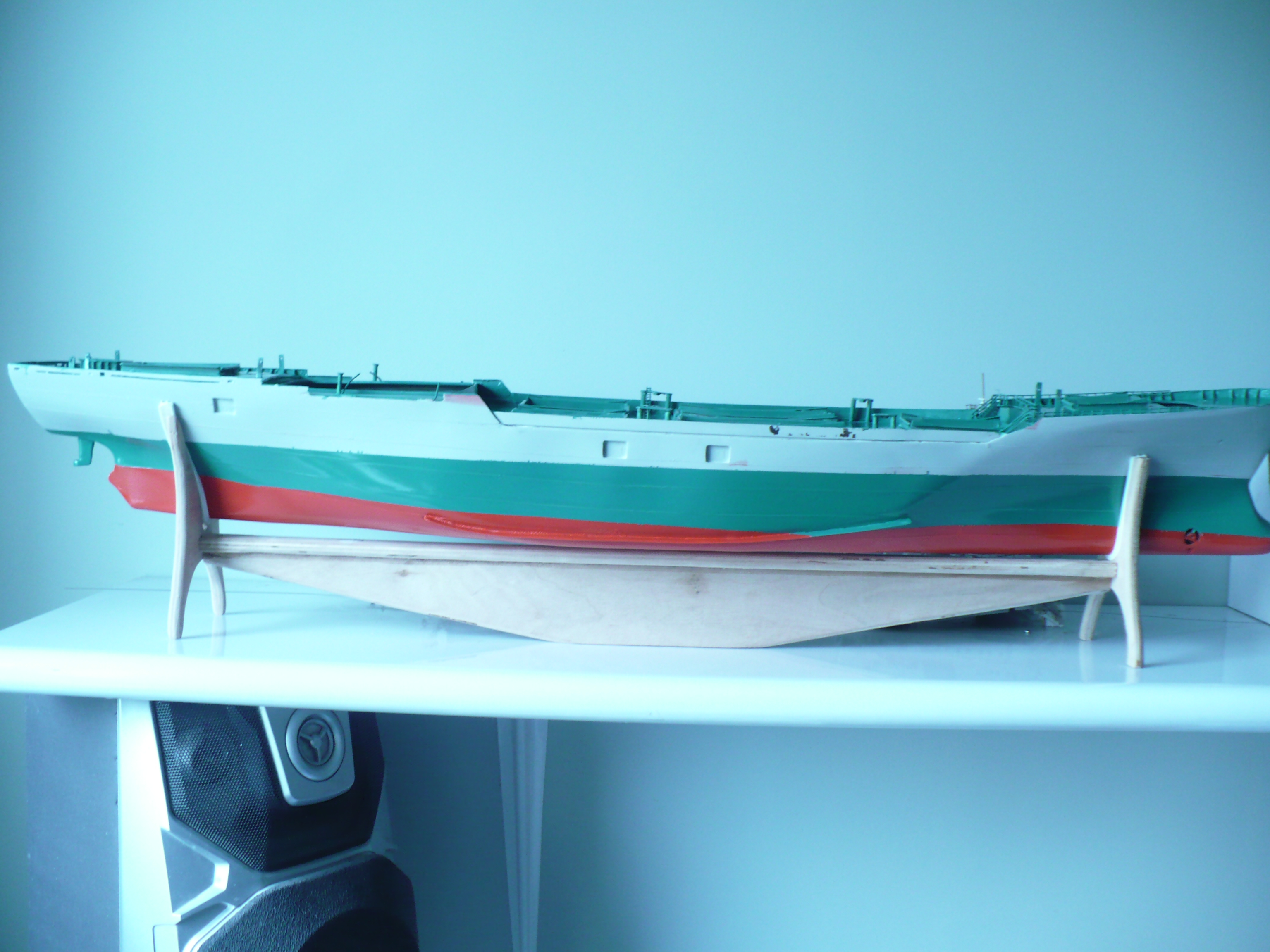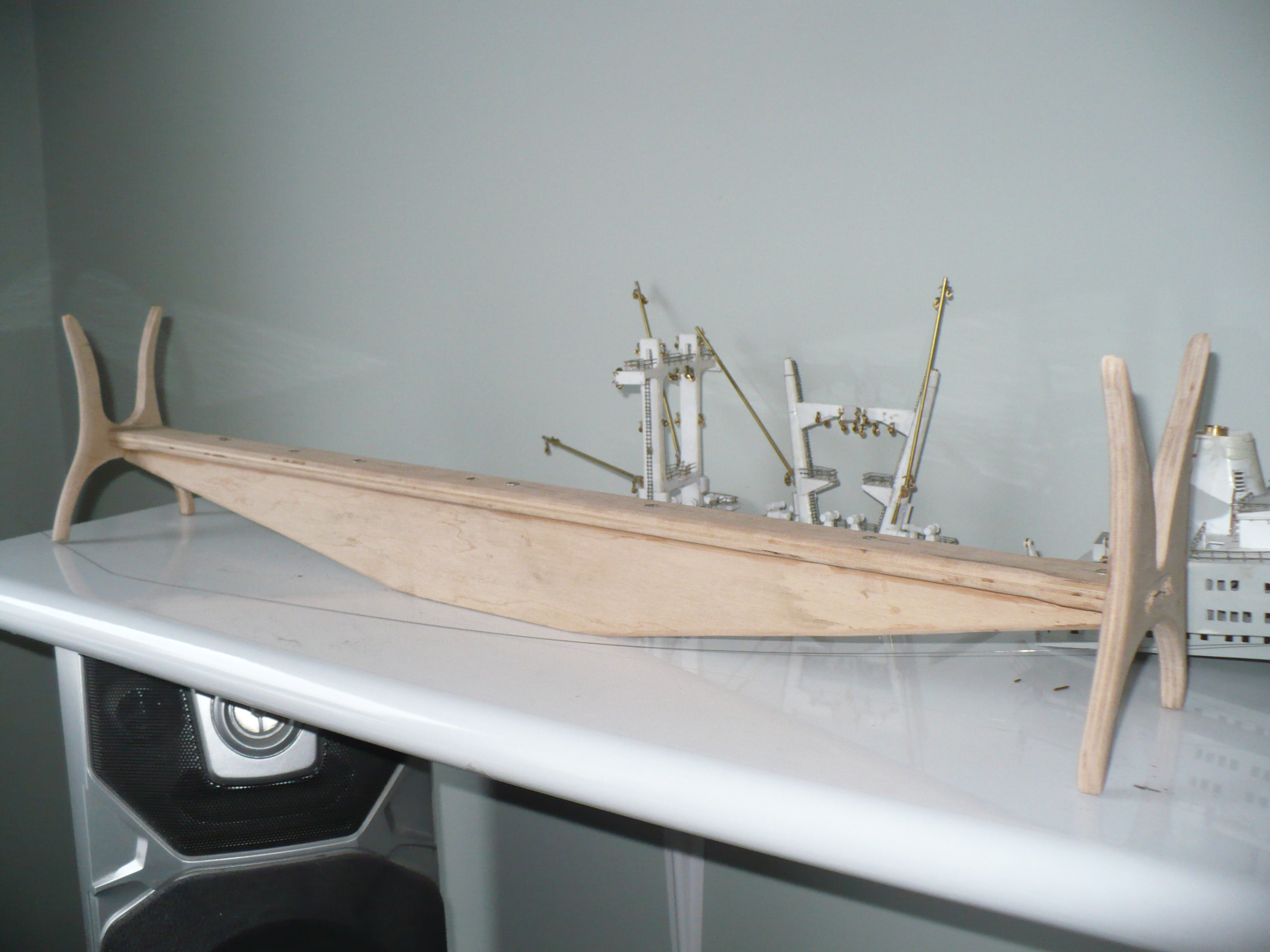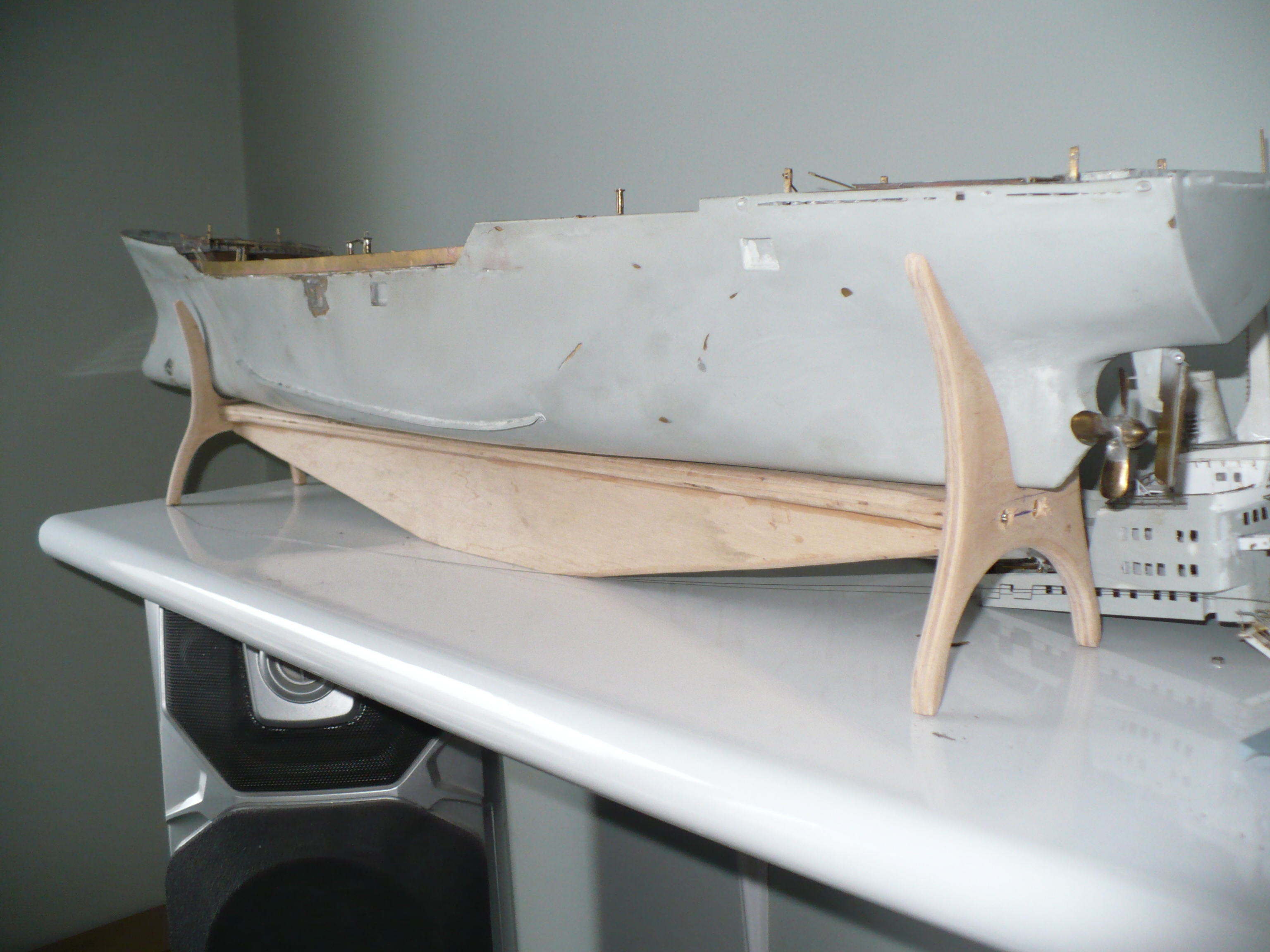 A że do wiosny daleko bo wtedy będę mógł zabrać się za malowanie , wziąłem się za wykonanie podstawki .Miejsca styku statku z kadłubem wyłożę skórą . Jest zamówiona tabliczka i trzeba jeszcze pomalować .