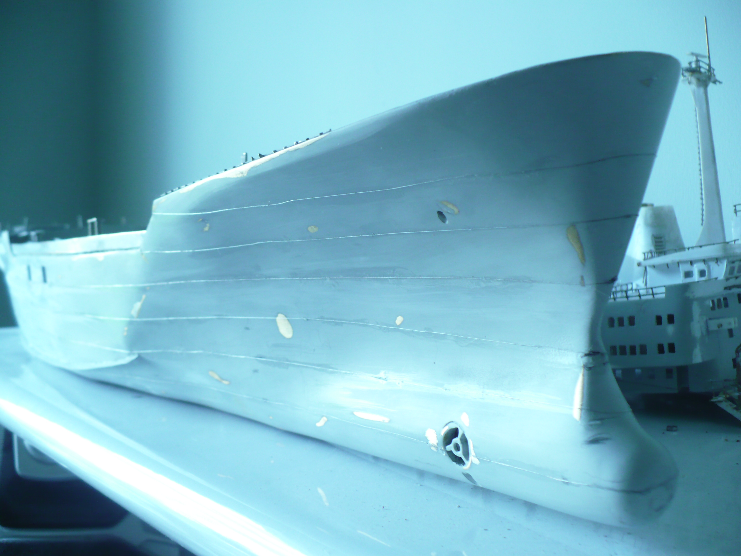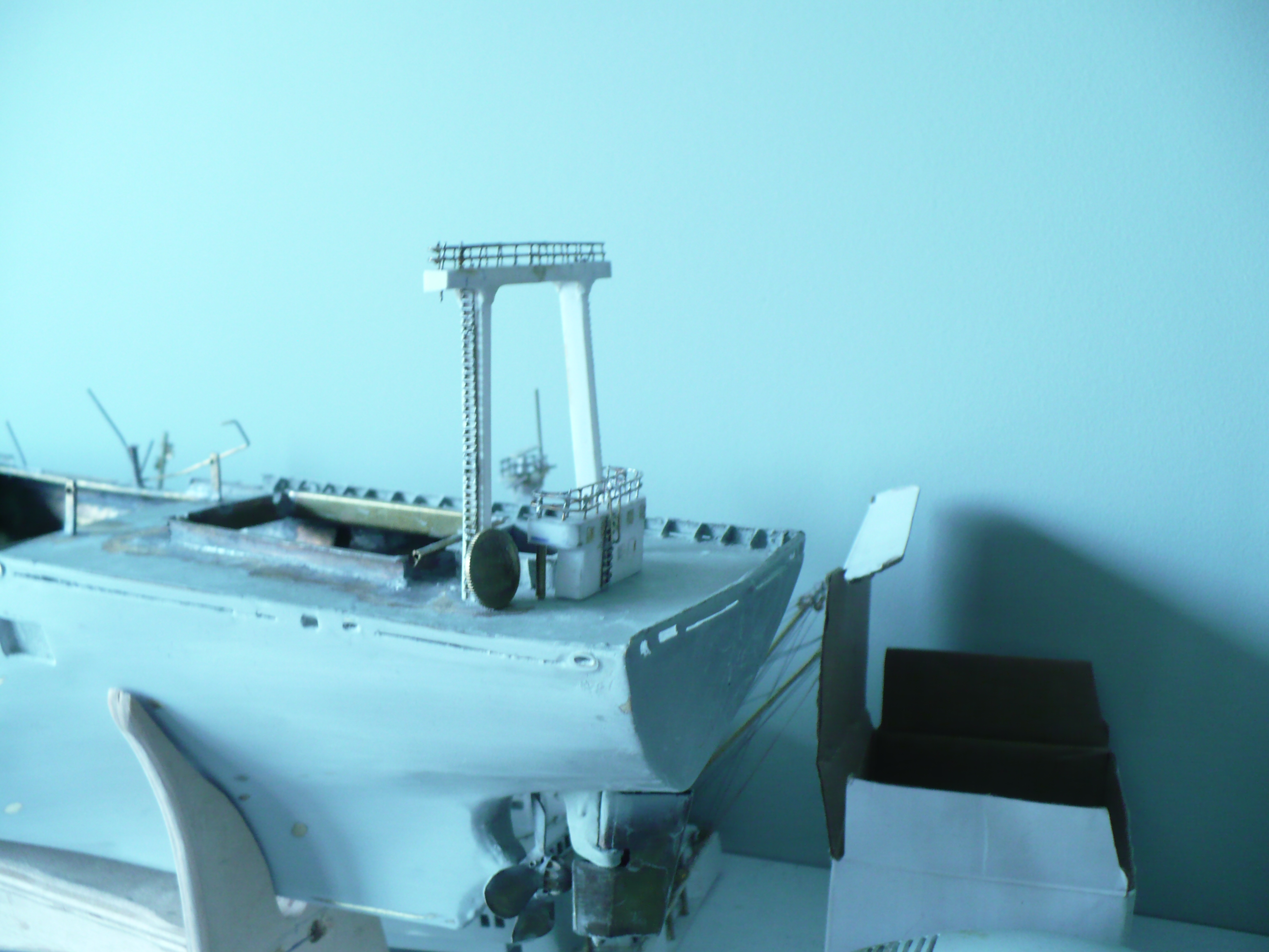 Zacząłem malowanie ,jeszcze szary .Relingi i małe detale pędzelkiem
