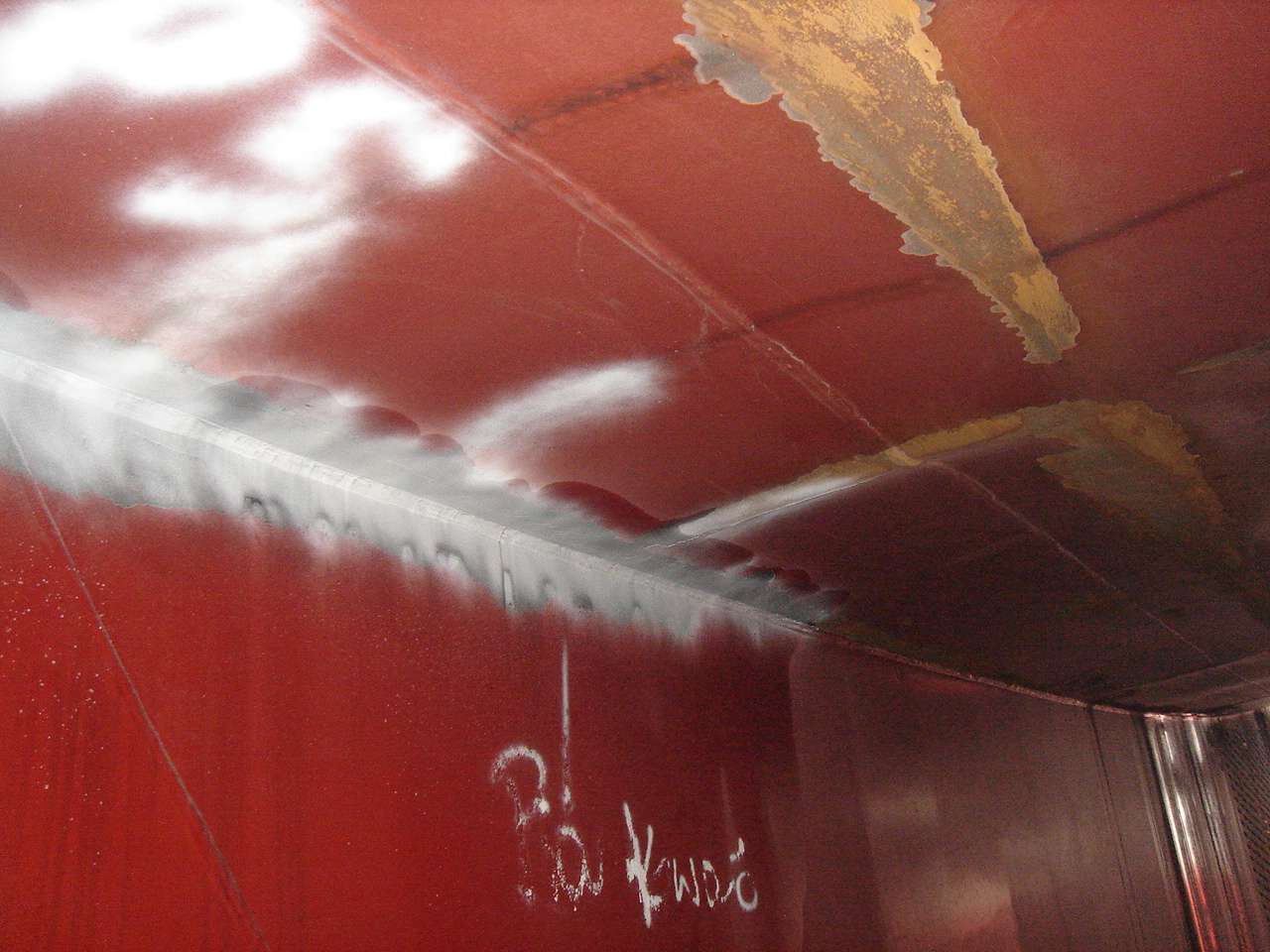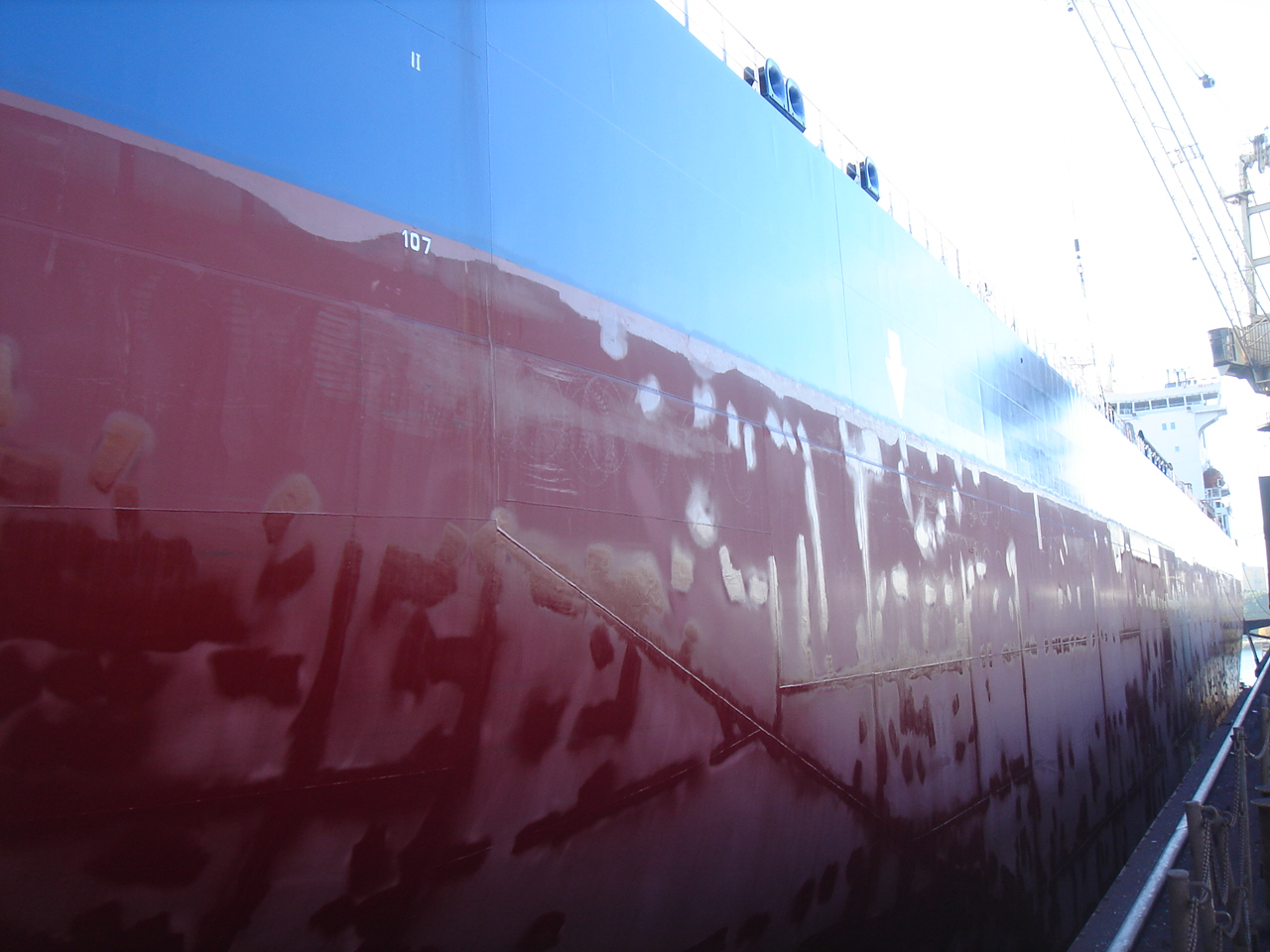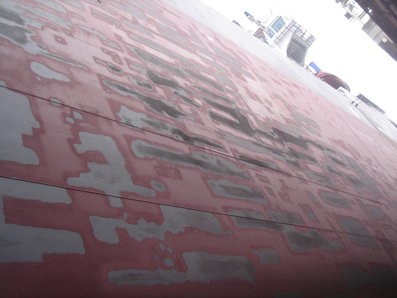 A teraz parę zdjęć burt dla orientacji jak to wygląda na kadłubie. Wydaje mi się, że mógłbyś nakleić cieniutkie pasemka z papieru lu jakiejś folii Drut nie będzie racze wyglądał ładnie. Na pasemka dasz farbę i uzyskasz lekką wypukłość. to zdjęcie to dno żaglowca Almanach w czasie odbiorów. To białe to sprawdzanie spoin. Pozdrowienia