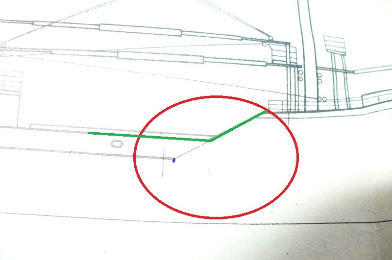 W widoku z góry jak i od strony bury zieloną linią wyznaczył Pan górną część poszycia nadburcia i spaderku. Zaznaczona linia X kończy się przy pokładzie. Jak najbardziej prawidłowym jest, że elementy pionowe (różnie nazywane - zależnie od konstrukcji) nadburcia pokrywają się z elementami wiążącymi poszycie kadłuba w rejonie spaderku. Linia X to łączenie nadburcia z kadłubem.
