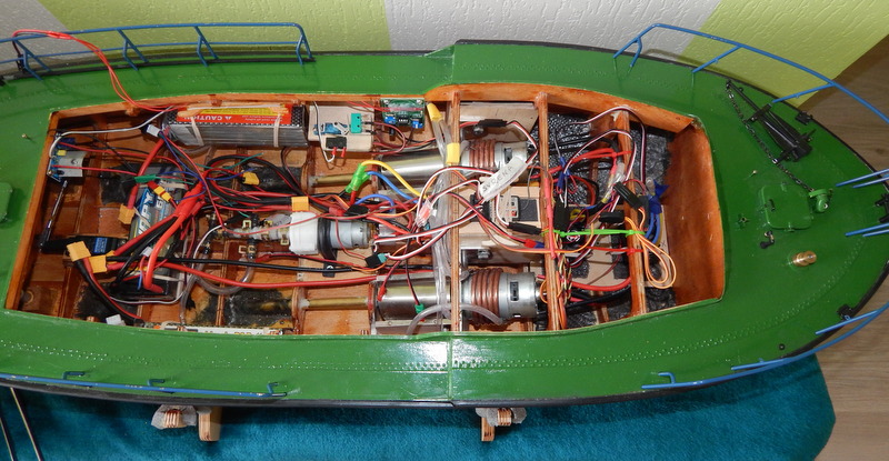 No z tym pływaniem tak jest. Na pełny gaz łódź wyskakuje z wody i słyszane są zaciągnięcia powietrza przez śruby. Nawet na tym filmiku, który przesłałem w pewnym momencie to słychać. Trzeba pływać nie na pełnym gazie. Wyjść z problemu jest kilka: ustawić Dual-rate na drugim kanale np. na 70%, mogę wymienić śruby z mniejszym skokiem, pod cyngiel gazu a radiu podkleić jakąś gumkę ;) , aby nie pozwalała docisnąć spustu na full.