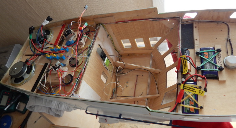 Kanał 6 (proporcjonalny sterowany potencjoetrem) - oświetlenie sterówki i lampa tylnego pokładu (potencjometr w połowie), białe oświetlenie masztu razem ze sterówką i tylnym pokładem oraz kolorowe lampy pozycyjne (potencjometr na full)