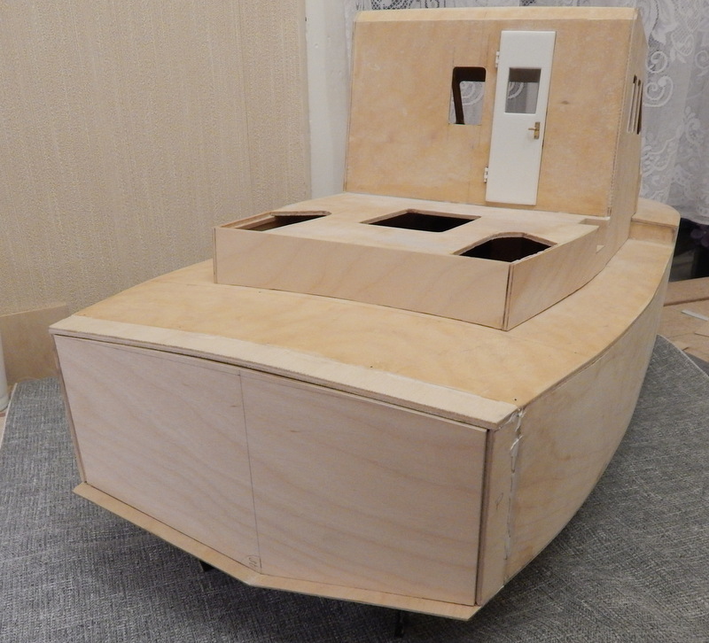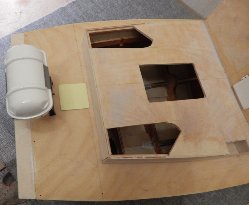 No i jest kleks !! Nikt nie obiecywał, że będzie łatwo . Nie wiem jak ja to zrobiłem, ale kadłub mi się "sfilcował" . Po dokładnych pomiarach brakuje mi 2 cm. Gdy założyłem stojak szalupy, stwierdziłem, że nie zmieści mi się ten kwadratowy właz.