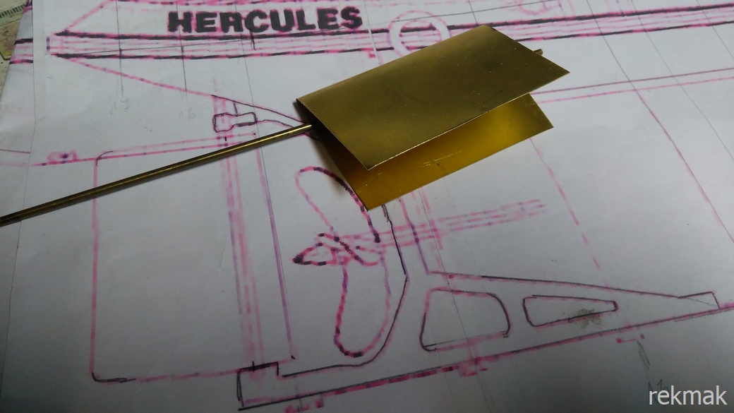 Wczoraj zrobiłem i zamocowałem uchwyty na klapach i części na maszcie. Tak jakoś dziwnie lampy na podstawkach są mocowane na linie, przed masztem. Żeby nie wpadały w ruch wahadłowy dałem linkę stalową 1,0.
