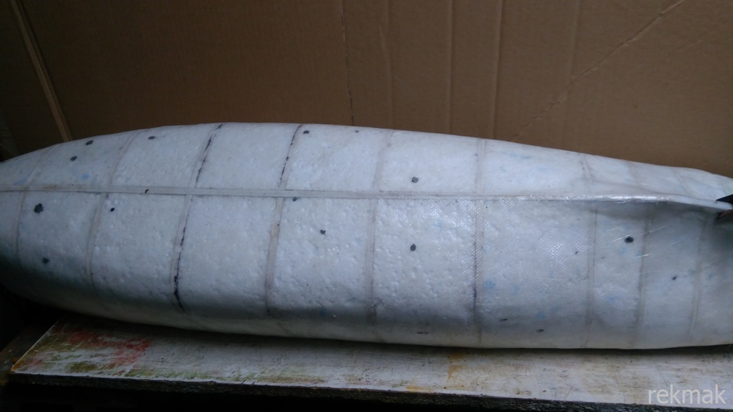 Pierwsza warstwa położona. Kadłub owinięty folią i po oderwaniu folii.