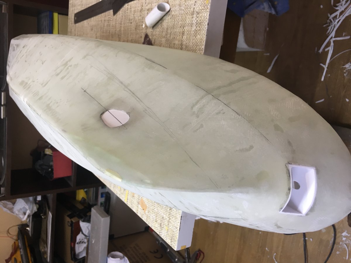 Żeby nie było, że nic nie robię kilka fotek z postępów nad SAR 3000 PASAT, które nakreślił Krzysiek Gdański, prace nad kadłubem, a że jest dość „specyficzny” to i pracy przy nim sporo , środkową osłonę wału napędowego myślałem ze zrobię od tak z ręki ale nic z tego skończyło się na zrobieniu szkieletu wklejeniu pianki oraz zalaminowaniu całości , zostały też zrobione wnęki steru strumieniowego , oraz nietypowej kluzy kotwicznej , kadłub został też przycięty do ostatecznego kształtu , a wszystko widać na załączonych zdjęciach .