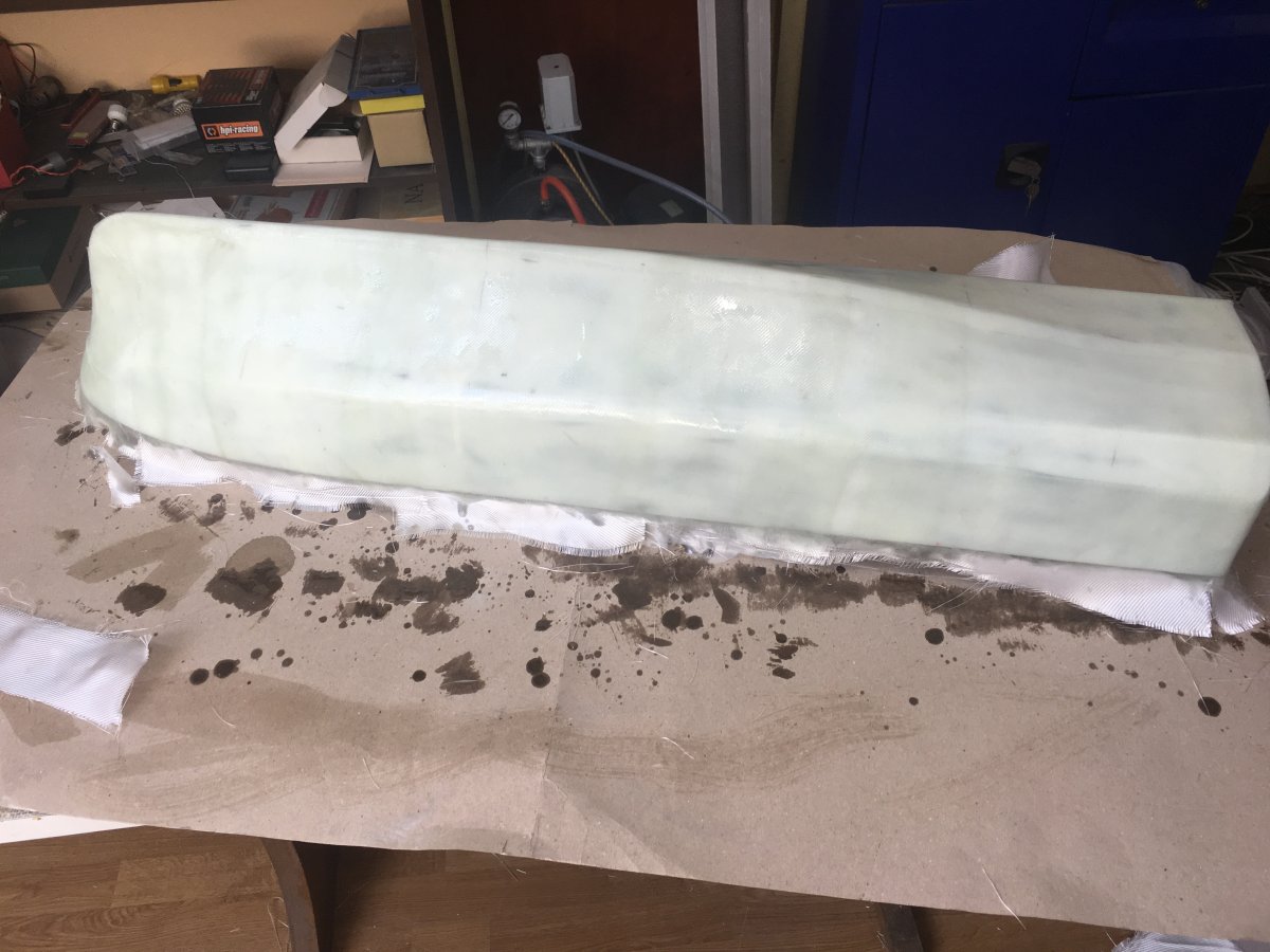 Kopyto zostało pokryte 5 warstwami tkaniny AEROGLASS , pierwsza warstwa 48g/m2 następnie 3 warstwy 200g/m2 i na koniec kolejna warstwa 48g/m2
