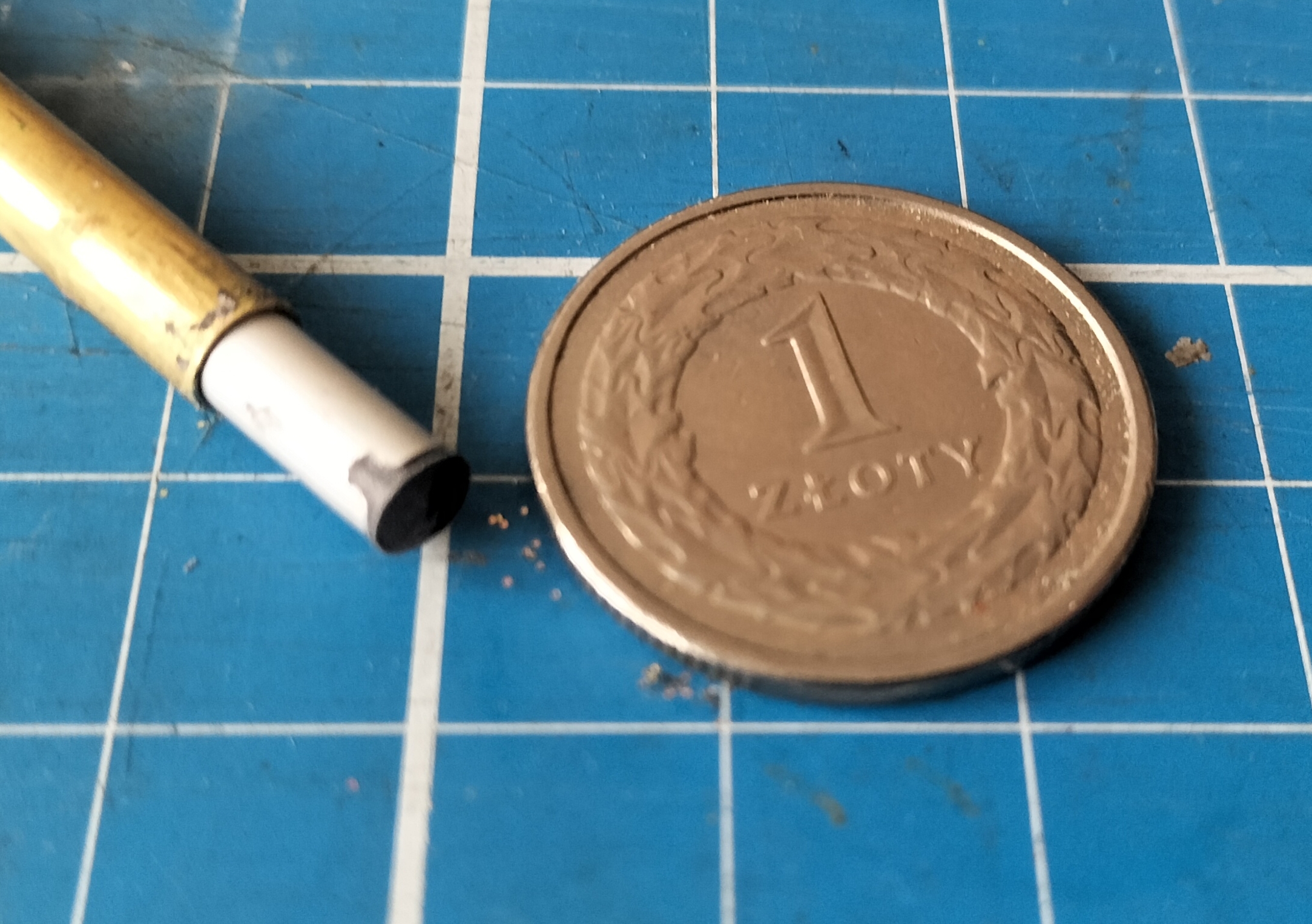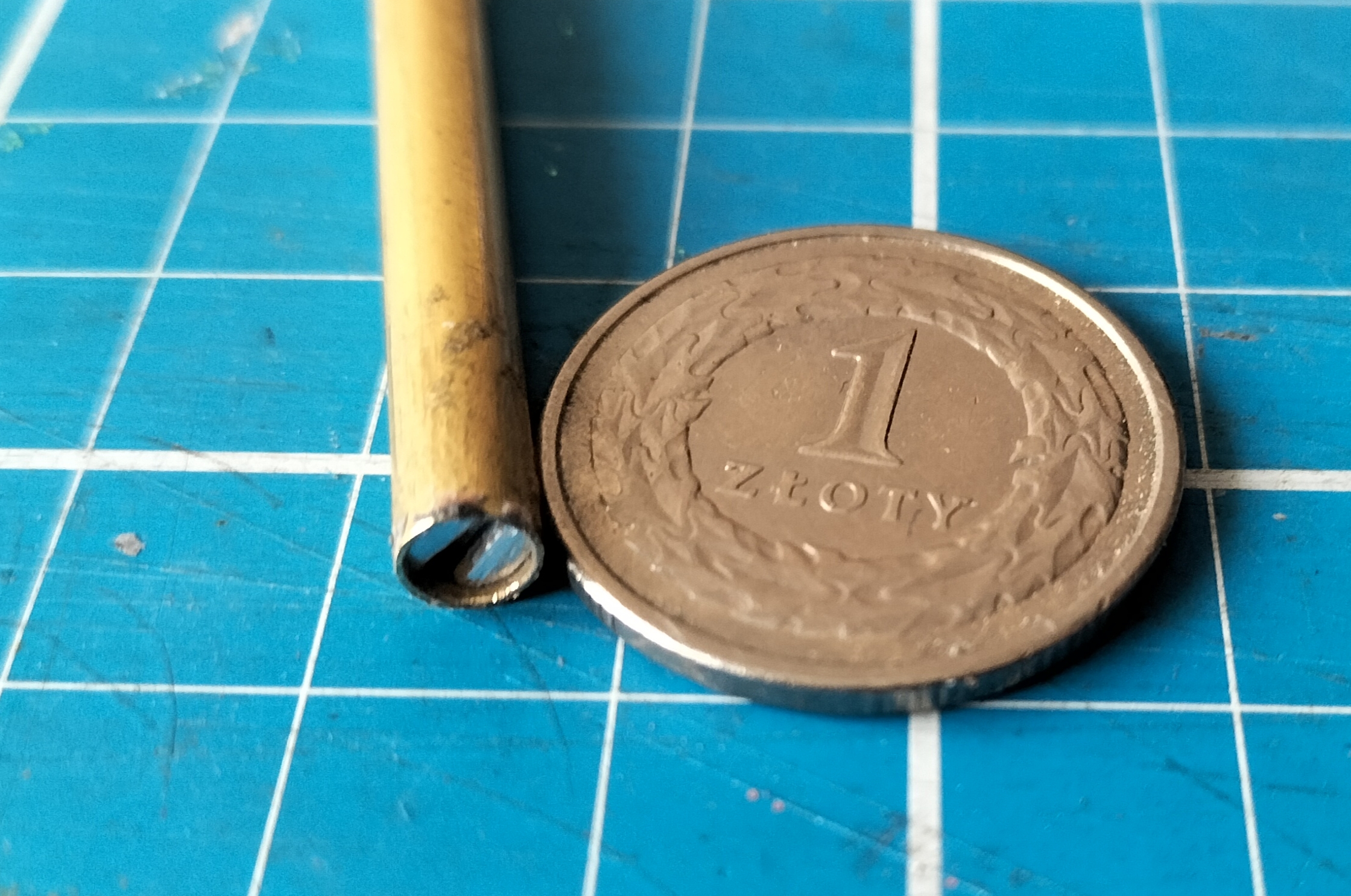 Forma to pręt aluminiowy 4 mm, odpowiednio nacięty w rurce mosiężnej.