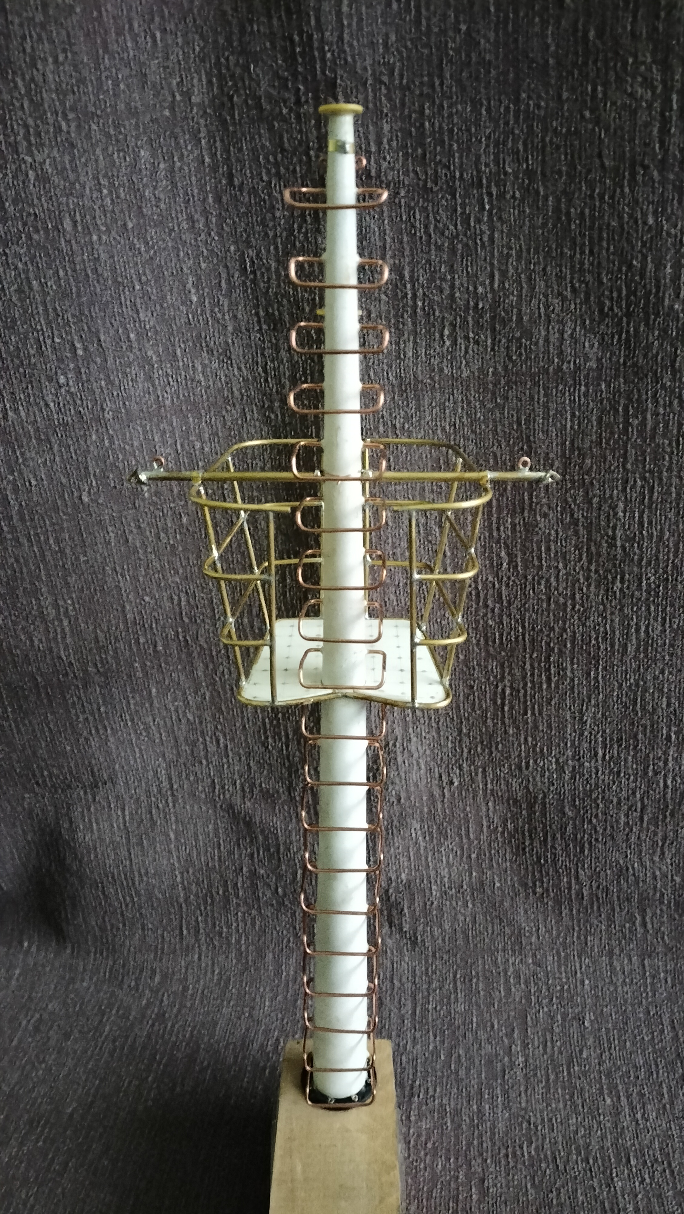Maszt przedni prawie skończony, bo zostało tylko malowanie. Musi poczekać, aż wykonam tylni. Te same kolory, więc będą malowane razem.