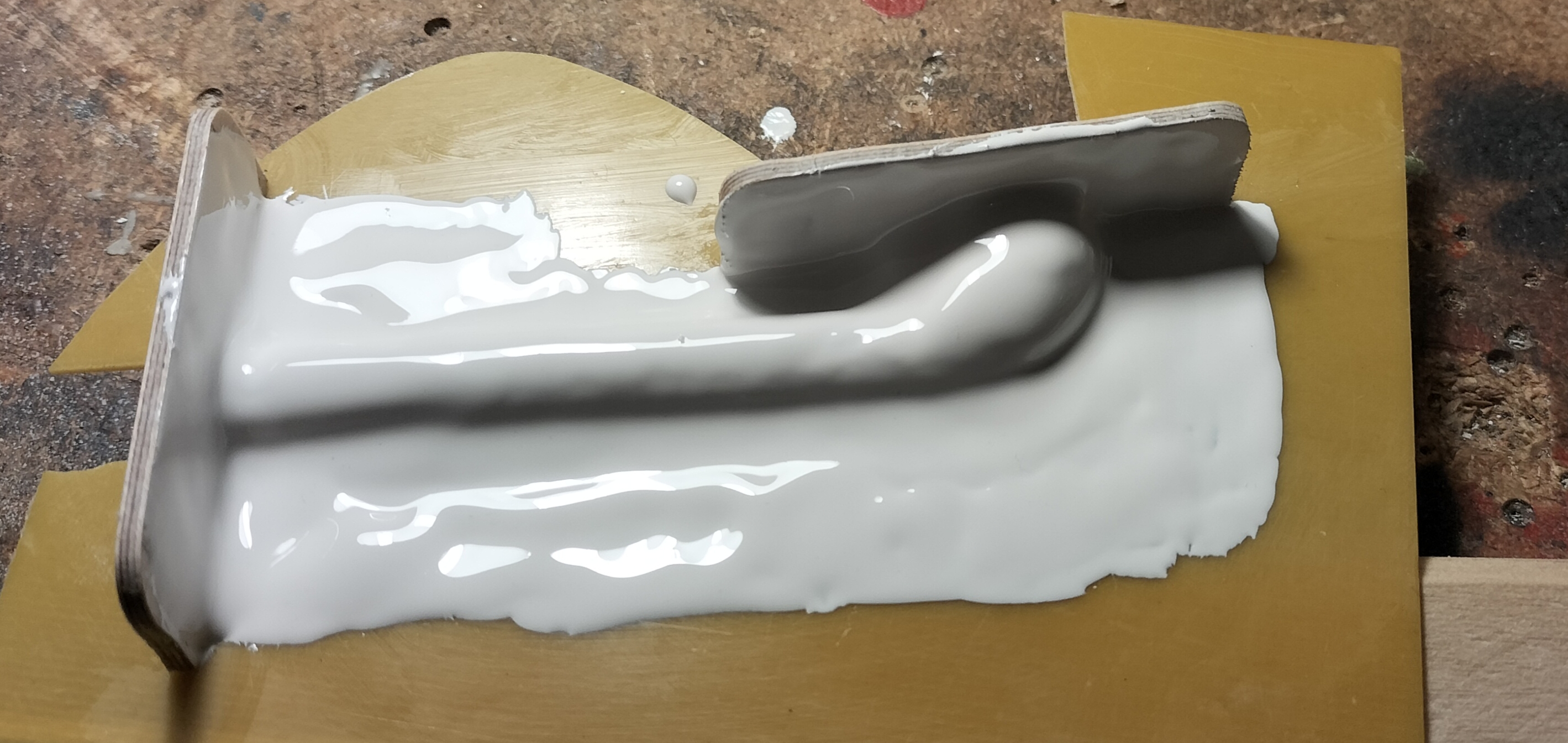 Ich kształt jest dość problematyczny, aby cokolwiek zaadoptować do imitacji. Zdecydowałem wykonać kopytko, formę i pozytyw laminatowy.