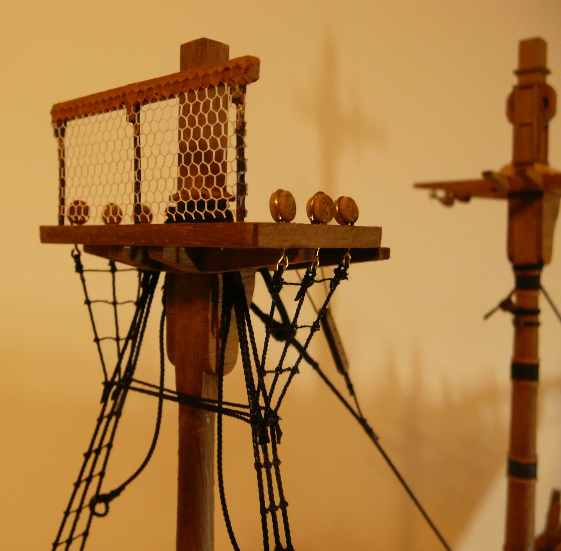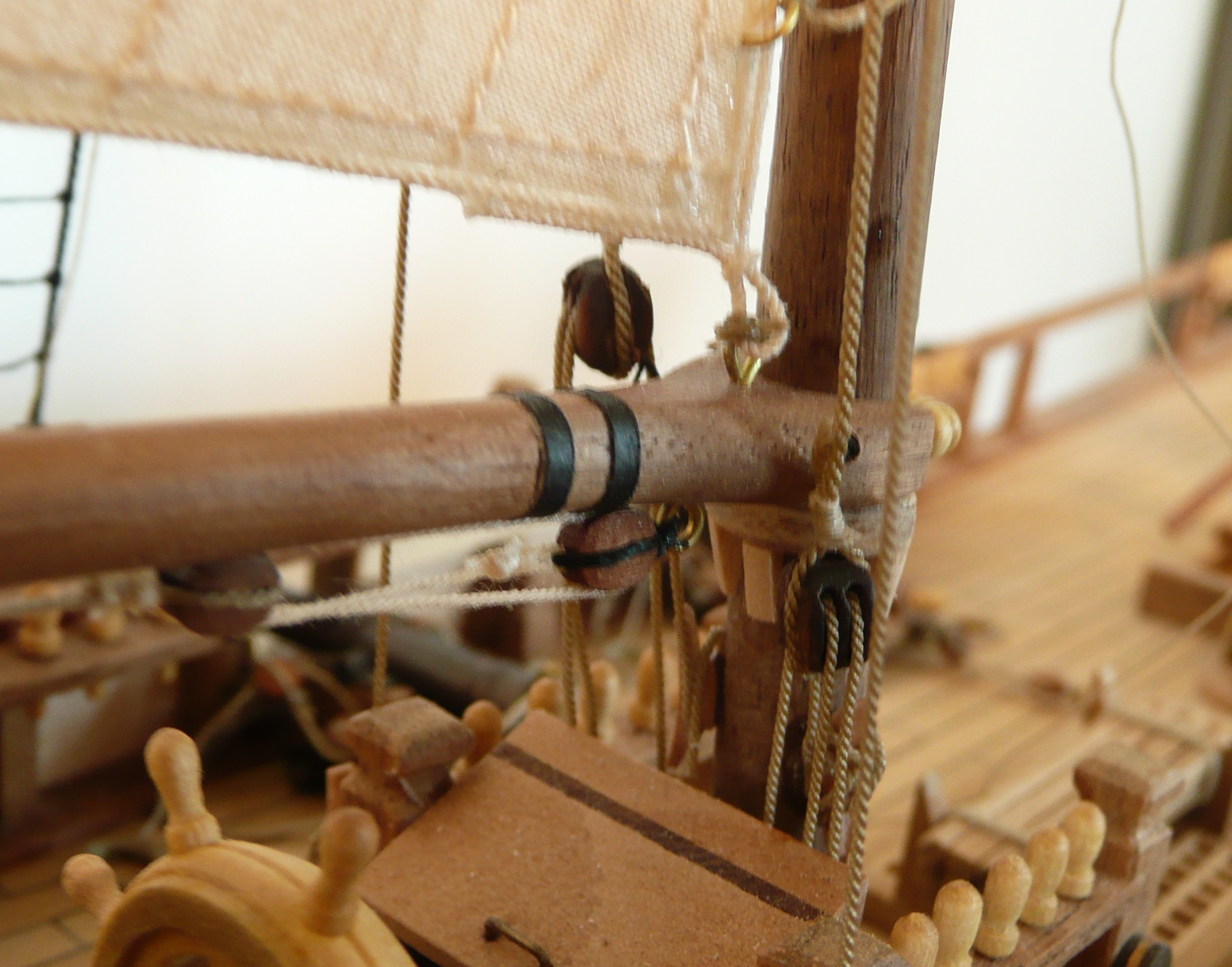 Poza tym, na niektorych jednostkach byly nieduze knagi zamocowane do want, i wokol ktorych byly owiniete liny olinowania ruchomego - wynika wiec z tego ze najpierw musisz zainstalowac wanty z tymi knagami wantowymi, a dopiero potem bedziesz zamocowywal na nich konce tych linek. (nie jestem pewien czy Bounty tez mial takie knagi)