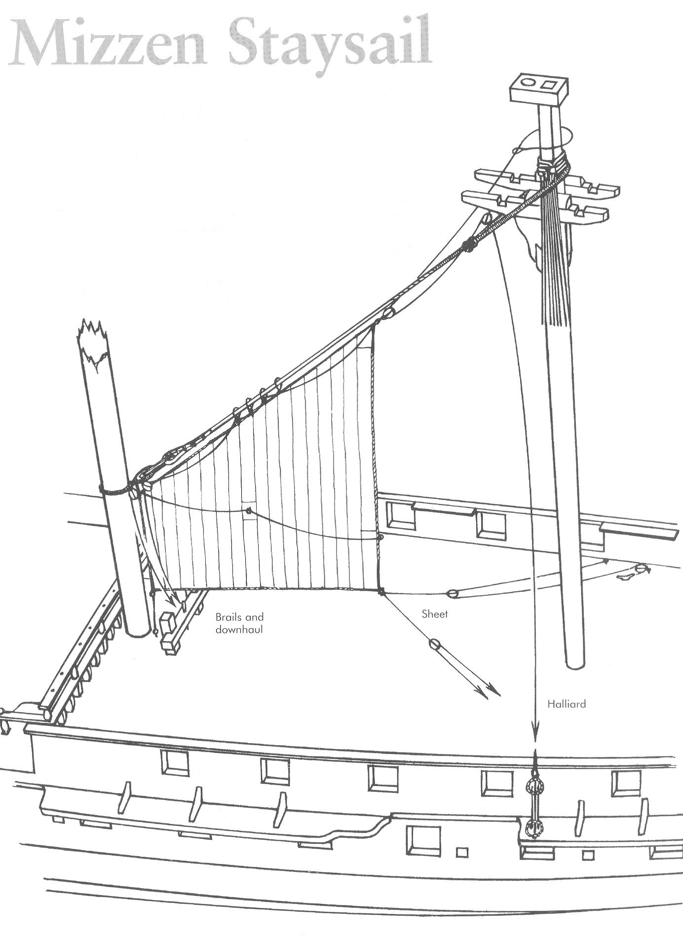 Kolejnym moim działaniem będzie założenie bezansztaksla wg rysunku Peterssona Tu mam całą serię pytań dotyczących mocowania żagla: