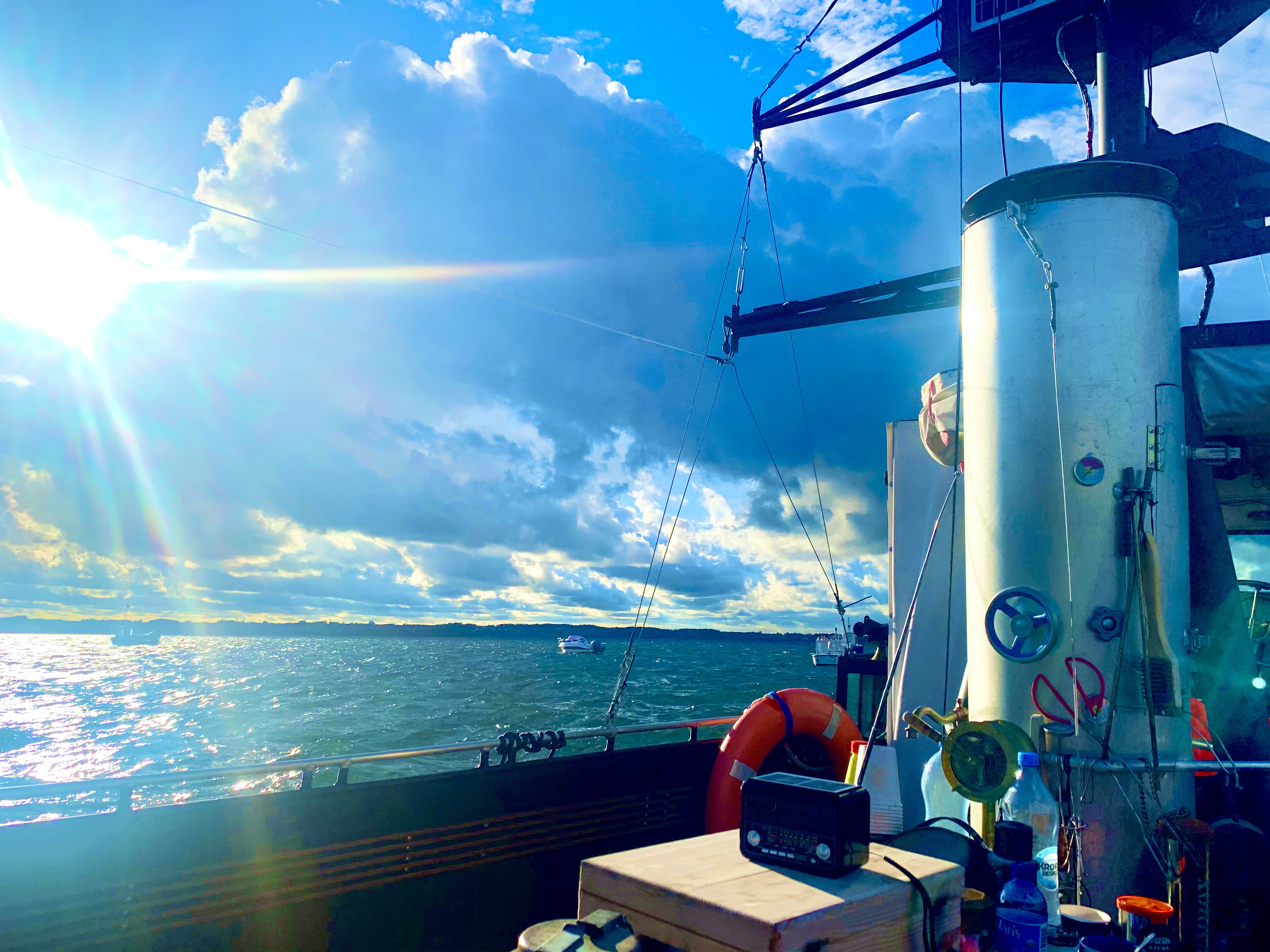 Witek Latem jak pogoda dopisuje wieczorami na pokładzie się dzieje . Czyli maleńki rejs o zachodzie słońca i morskie opowieści . Ja pracuję pry ratowaniu majątku armatora a to już jest często cala masa wspomnień u kolegów to samo im więcej wody mineralnej pijemy tym ciekawsze opowieści aż zjawia się jakaś druga połowa i za ucho wyprowadza z Pancernika Czasem jednak bywa i tak że zostaje na chwilkę wciągnięta w rozmowy i po niej, czyli pije mineralną razem z nami a potem nadchodzi świt . Spotykamy się nazajutrz pijąc kawę i częstując się aspiryną wyprodukowaną przez wroga . To były najlepsze wakacje w moim życiu .