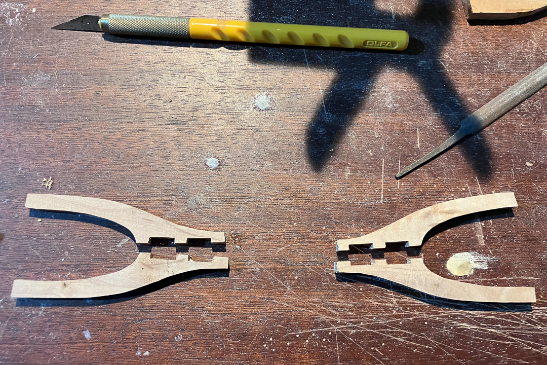 Te ramiona są dość upierdliwe. Wyciąłem starą dobrą ręczną laubsegą i podszlifowałem.