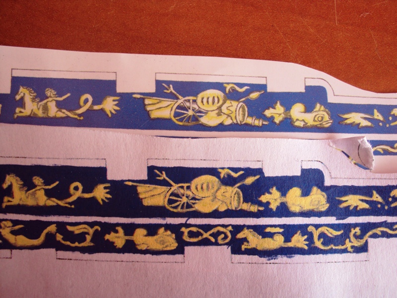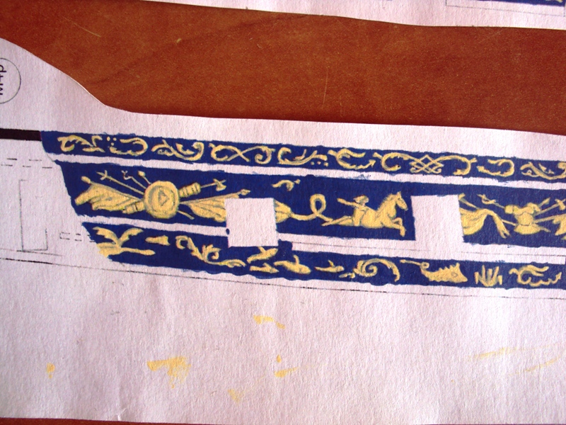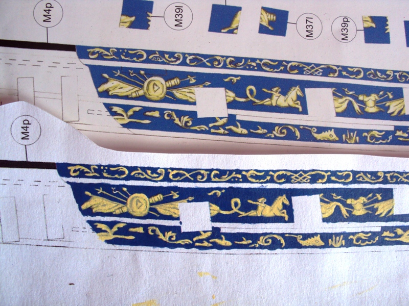 Tak jak pisał Kazimierz - tam gdzie rzeźby mają być tam będą,a gdzie malunki to malunki. Royal Caroline jest innym modelem i skoro ona miała na burtach rzeźby to tak trzeba. Okręty takie ja Bellona miała malunki. Gdyby to były rzeźby to bym nie robił tego modelu