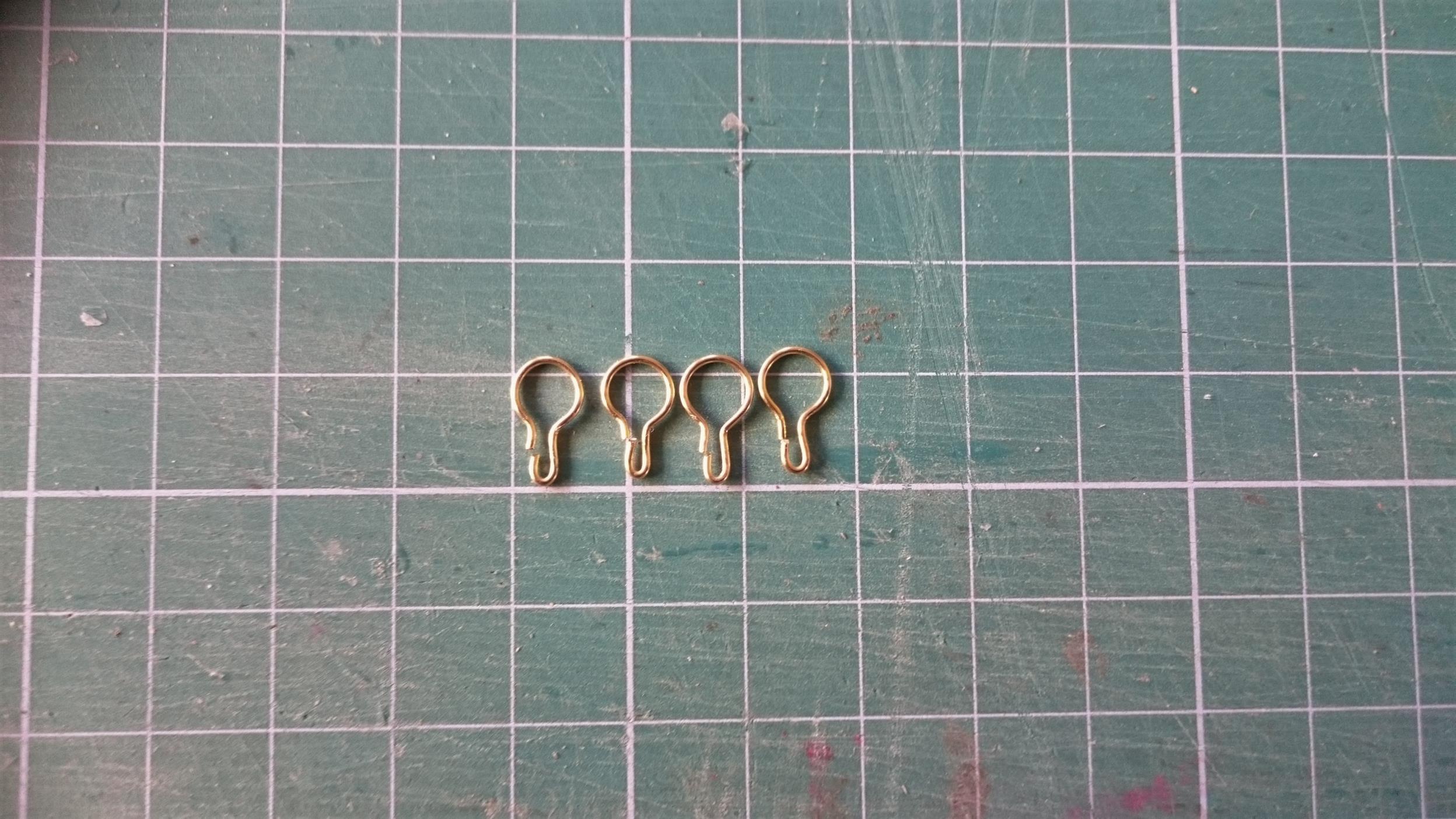 Okucia jufersów zrobiłem z drutu mosiężnego na przygotowanym szablonie, aby elementy były powtarzalne. Narzędzie zrobione z rurki mosiężnej i wiertła.