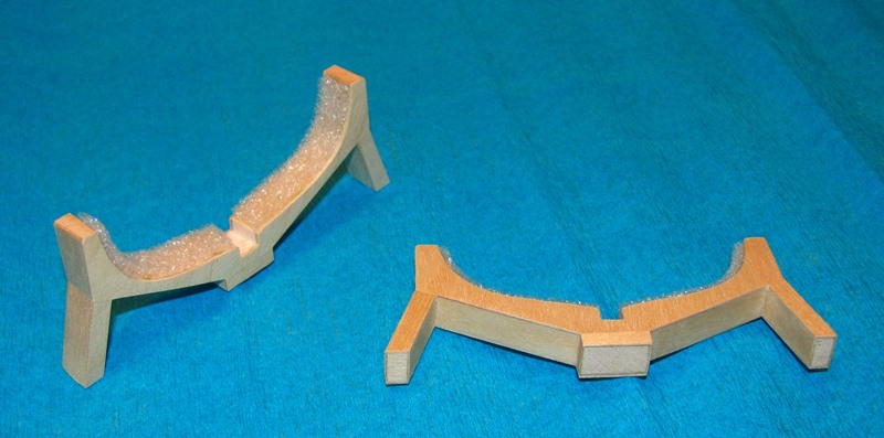 Środek jest z balsy oklejonej fornirem (chyba klon – jeśli dobrze pamiętam). Oparcie kadłuba okleiłem pianką.