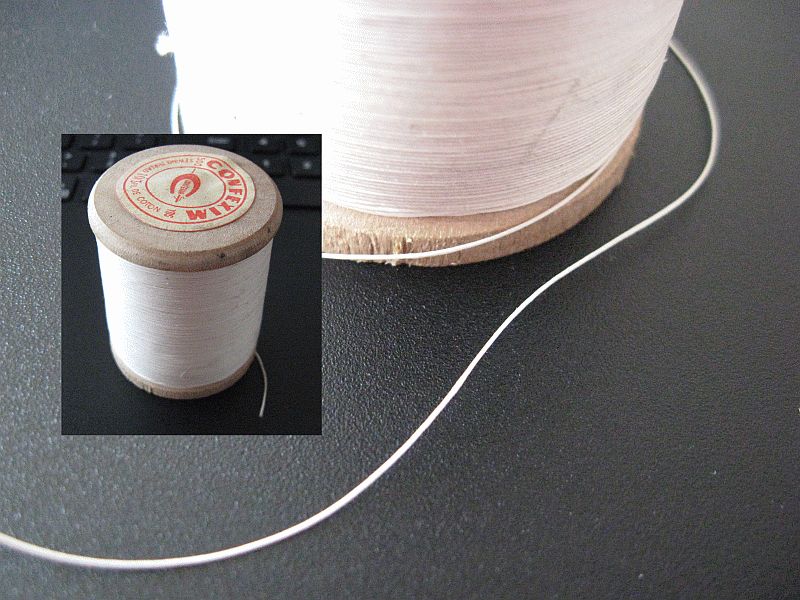 A przy nici pozostając, chcę się pochwalić znaleziskiem, jakiego dokonała moja Pani podczas sprzątania strychu. Mianowicie gdzieś w ciemnym kącie znalazło się pudełko z babcinymi robótkami, wśród których znalazło się też 20 szpulek niesamowitej nici z lat 40-ych/50-ych. Czysta bawełna bez żadnych kudłów. Średnica 0,35 mm.