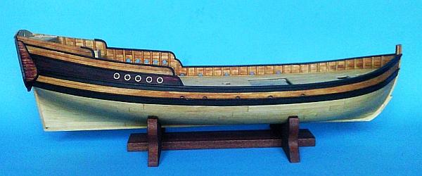 Udało mi się w wolnych chwilach wykończyć nadburcia i szczyt pawęży. Przy najwyższym z pokładów, na nadburciu, w przyszłości ma się również znaleźć nieduży reling. Listewki wykonałem jak wcześniej - z dwuwarstwowo klejonego forniru olchowego, malowanego następnie tuszem kreślarskim Astra, całość natomiast zabezpieczyłem pokostem lnianym. Oto efekt:
