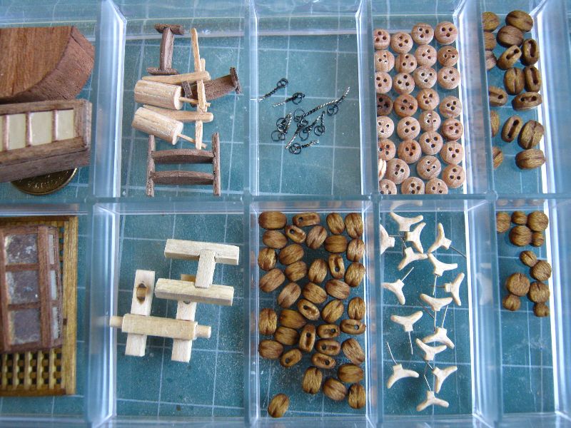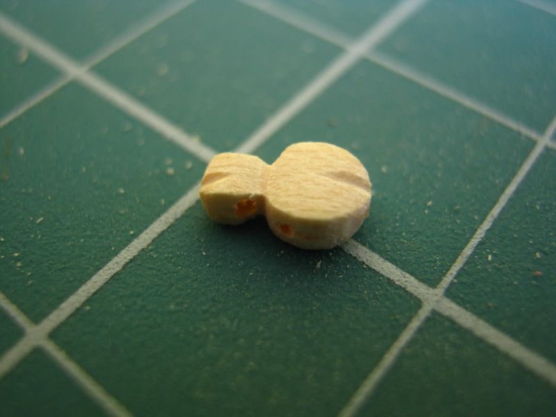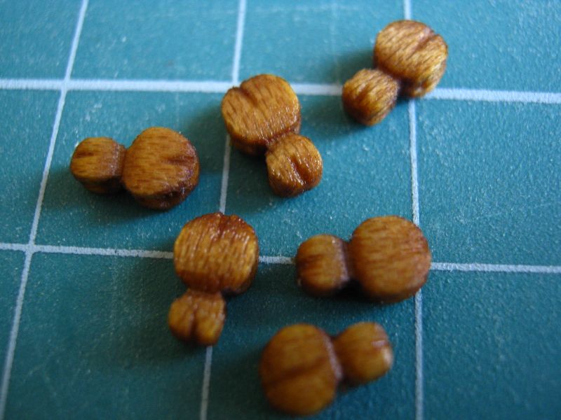 Tu cały komplet największych na łajbie bloczków 5mm. Zostało mi jeszcze 40szt bloczków 3,5mm i 8 szt takich bloczków "bałwanków"