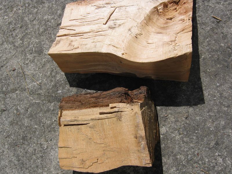 Udało mi się zdobyć dwa kawałki gruszy. Nie wiem jak ją teraz obrobić, na jakie kawałki pociąć i ile to musi się sezonować. Drzewko zostało ścięte w zeszłym roku a klocki leżały na dworze. Ten większy klocek ma ok 30cm długości, w najgrubszym miejscu ok 8cm grubości i 15 szerokości.