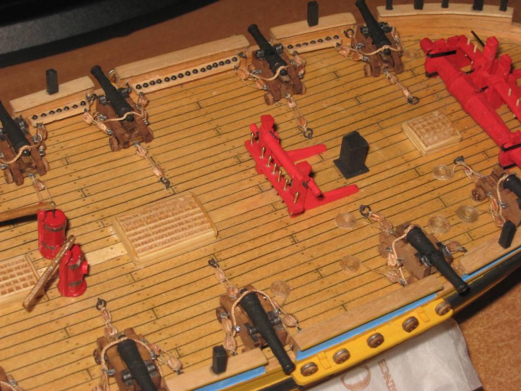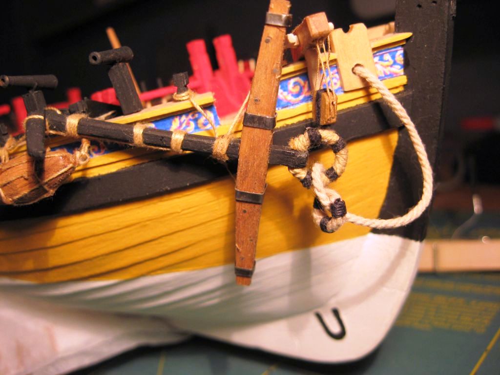 Burty nabrały koloru, pojawiła się kotwica na sterburcie oraz kończę uzbrajać Alerta w falkonety. Jednocześnie pracuje nad masztem.