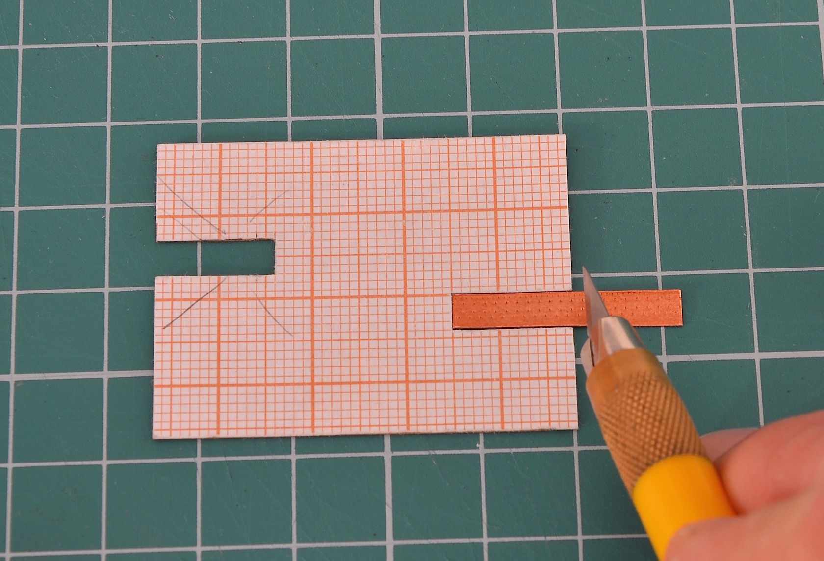 Tak przygotowane paski miedzi ciąłem następnie - przy wykorzystaniu wzornika - na odcinki o właściwej długości, konkretnie 13 mm.