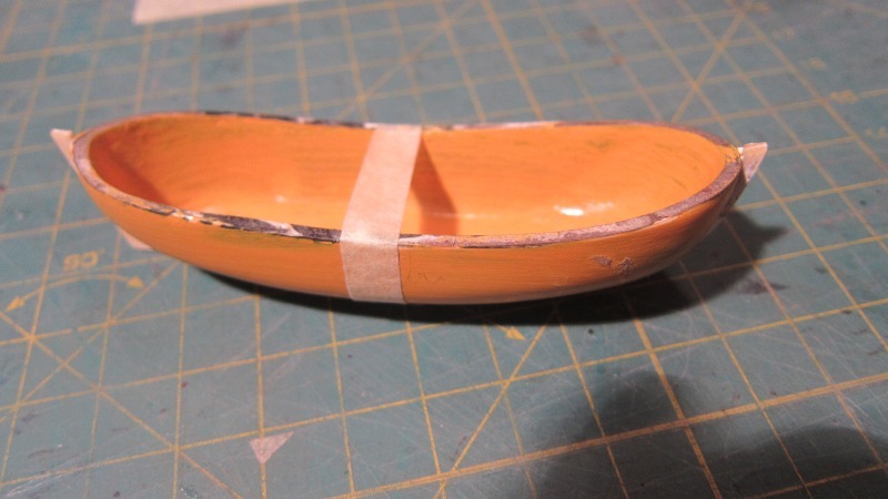 dalsze prace przy żaglowcu. Nitki powiązałem i pobuchtowałem. Kolej na szalupę.