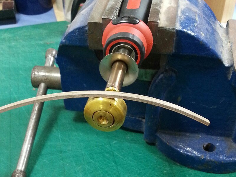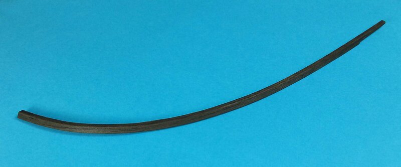 Aparat nad morzem więc foto z komórki. Pierwsza część pierwszej odbojnicy. Listwa jest ze sklejonych ze sobą kilku warstw forniru. Gięta oczywiście na mokro, tylko do zdjęcia wzięta sucha listewka dla zobrazowania. Po wyprofilowaniu i wyschnięciu element przeszlifowałem i pobejcowałem. Pasuje jak ulał. Jestem zadowolony :)