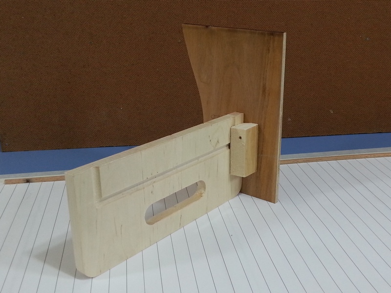 Zabrałem się za kil i stewy. Ponieważ z orzecha amerykańskiego nie mam nic grubszego niż fornir, zmuszony byłem wykombinować coś takiego: