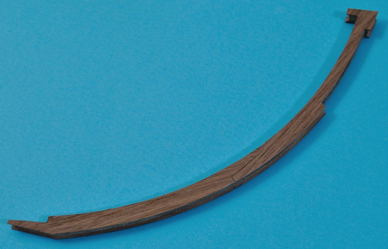 Zabrałem się za kil i stewy. Ponieważ z orzecha amerykańskiego nie mam nic grubszego niż fornir, zmuszony byłem wykombinować coś takiego: