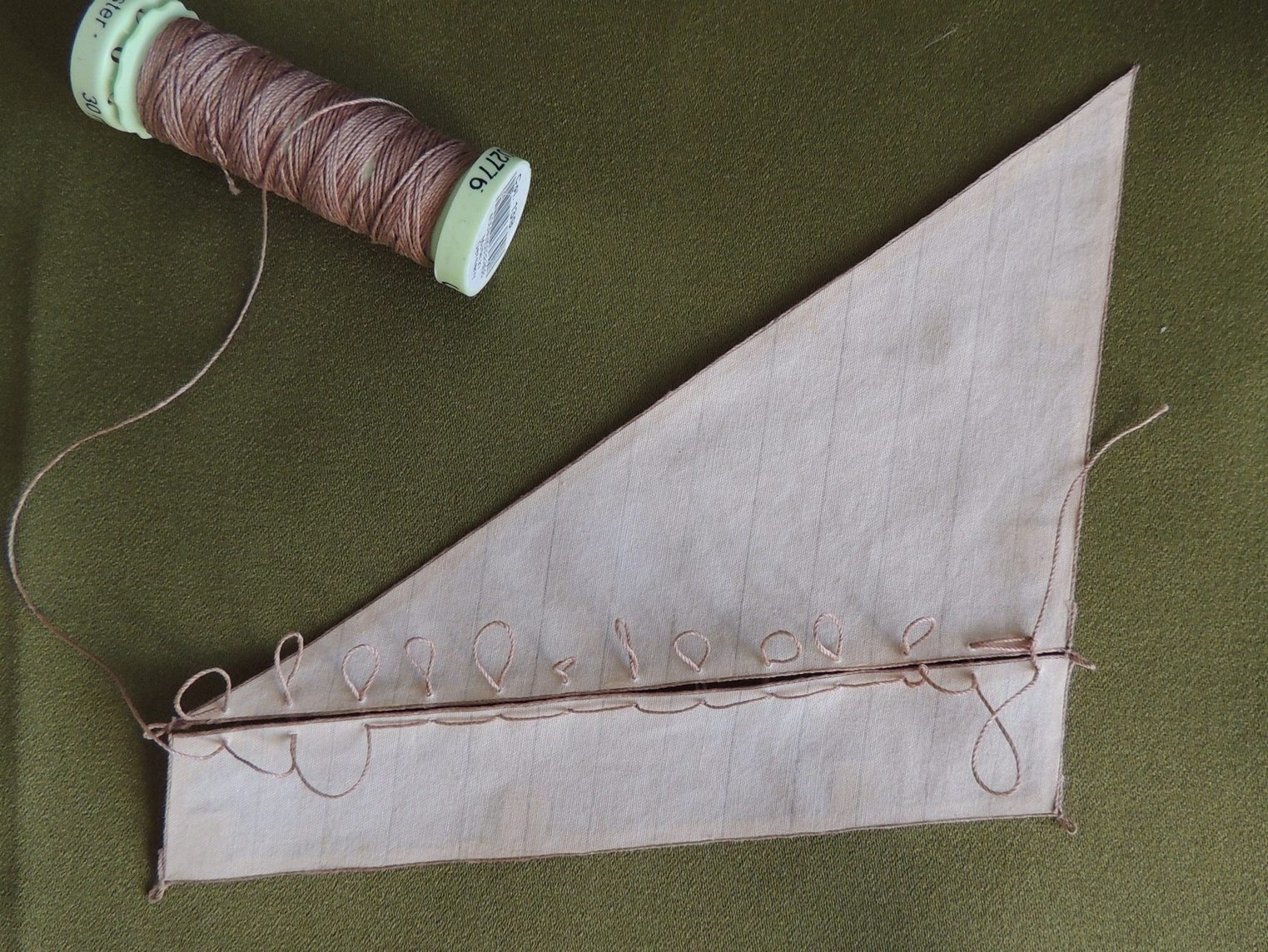 Stworzyłem pierwszy żagielek. Materiał to jakieś cienkie płótno. Barwienie herbatą. Wzmocnienia i liklinka klejone na Bison super wood. Imitacja brytów żagla zrobiona zwykłym ołówkiem