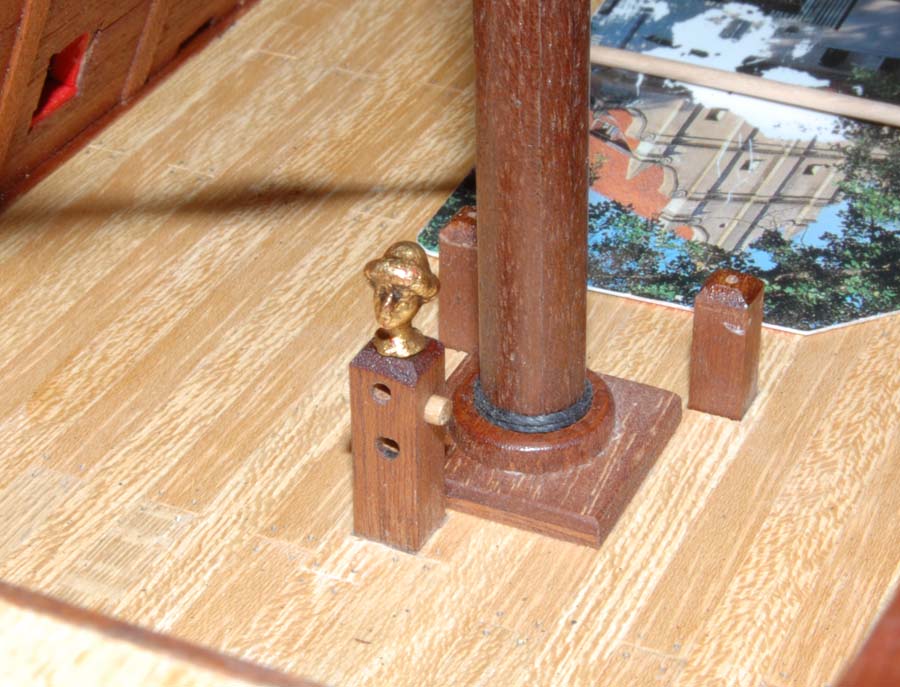Zabieram się za pachoły i tu mam dylemat. Czy pozostawić to co proponuje Shipyard, czyli tradycyjne trapezowe zwieńczenia, czy wymienić na głowy tak jak to jest np. na Batavii.Problem w tym, że pachoły są różnej grubości, a głowy mam tylko w jednym rozmiarze. Na zdjęciach pokazałem o co mi chodzi.