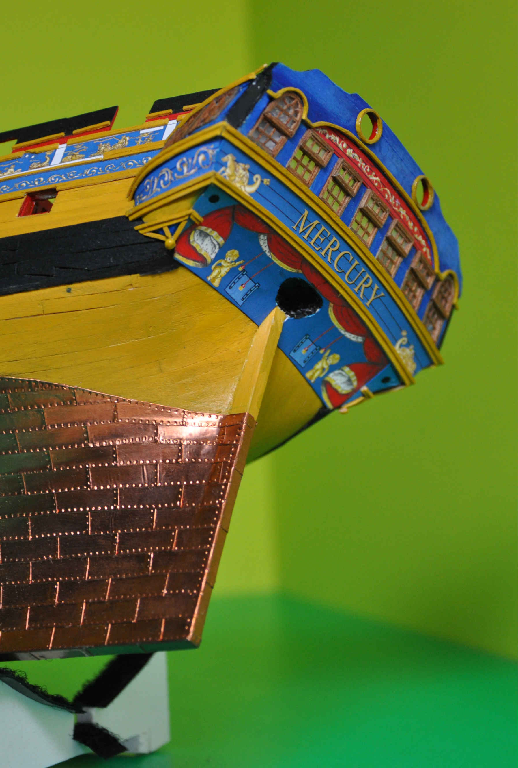 Jeszcze słowo o niebieskim pasie z rzeźbami na burcie - mógłbyś się pokusić o uplastycznienie tego elementu za pomocą złotej farby DecorFin Talensa. Tubka jest wyposażona w cos na kształt igły i można za jej pomocą nakładać złotą farbę wprost na rysunek rzeźb. Nie kosztuje to wiele roboty, a model zyskał by dużo. Możesz to oczywiście zostawić tak jak jest i tez będzie Ok.