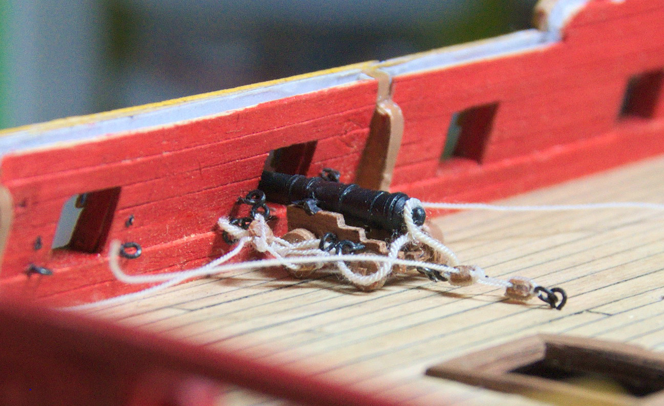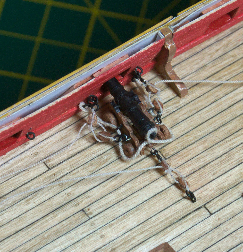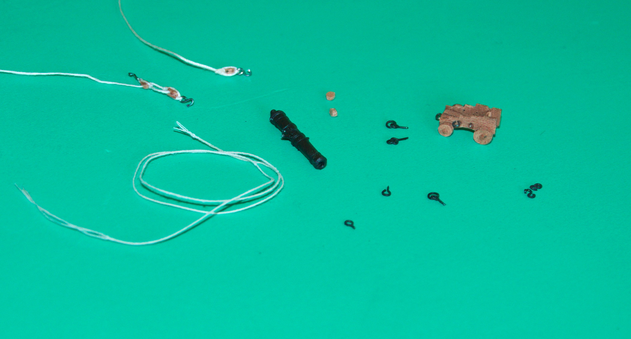 No i artyleria. Lawety wcześniej przygotowane. Armaty wykonałem, wcześniej przygotowując wzornik pomniejszony o grubość papieru, wzmocnienia wykonane z pasków papieru. Pierwsze podejście do bloczków, wykonane z forniru .