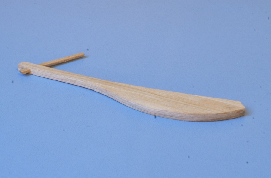 Ster został wykonany z 6 warstw forniru 0.5 mm. 4 warstwy to pełny zarys steru, z tym że 2 wew. warstwy z przerwą, która utworzyła otwór na rumpel.