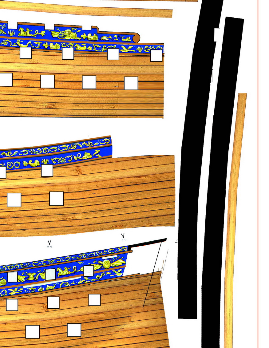 By utrzymać skale ze szkieletem burty też są na bazie Victory -długość, kształt dolnej linii ale proporcje,wysokość,rozmieszczenie luków działowych ....to wszystko jest zgodne z Belloną .