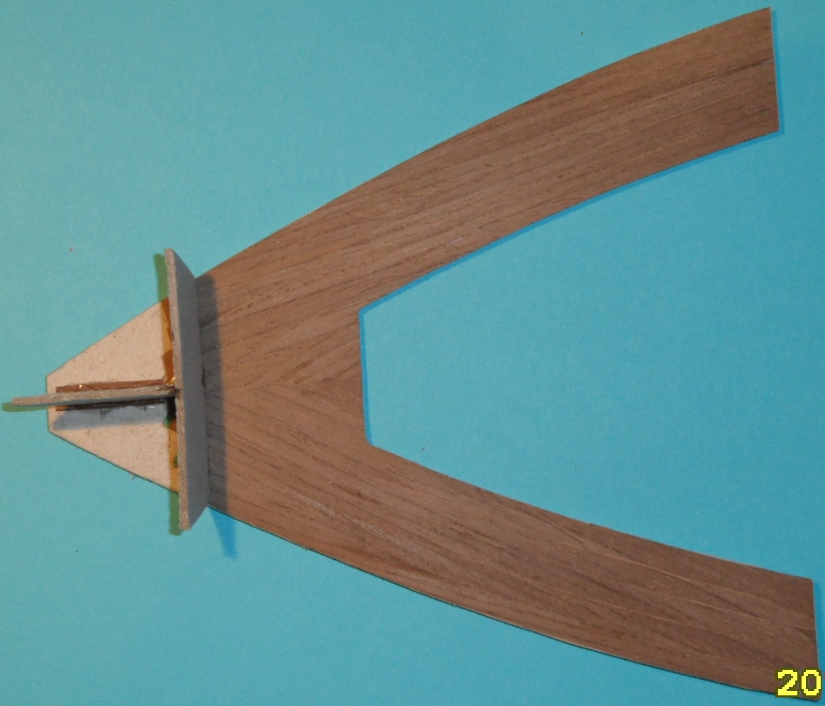 Czynność ta wykonana została dla każdego z elementów stewy dziobowej i rufowej. Sam kil wykonałem z listewki lipowej doszlifowanej na wymiar 9x9mm.