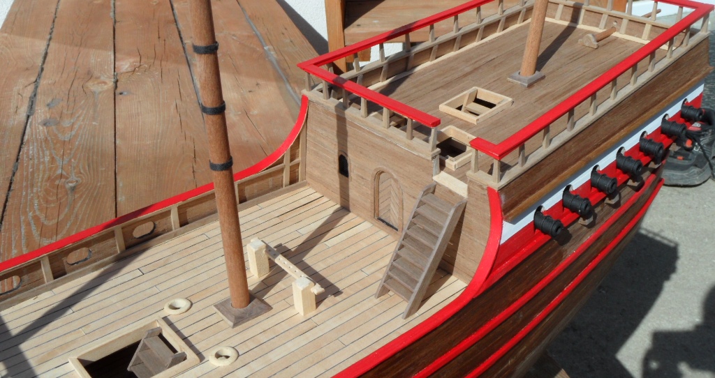 Przy kodze nie wiele zrobiłem (teraz wiosna, czas pracy w ogrodzie :D ). Doszły wszystkie drzewce, malowanie poręczy, wsporniki pod pokłady oraz trochę drobnicy. Różnice w odcieniu poszycia lub elementów pokładu, wynikają z tego, że jeszcze nie wszystko zdążyłem pomalować caponem.