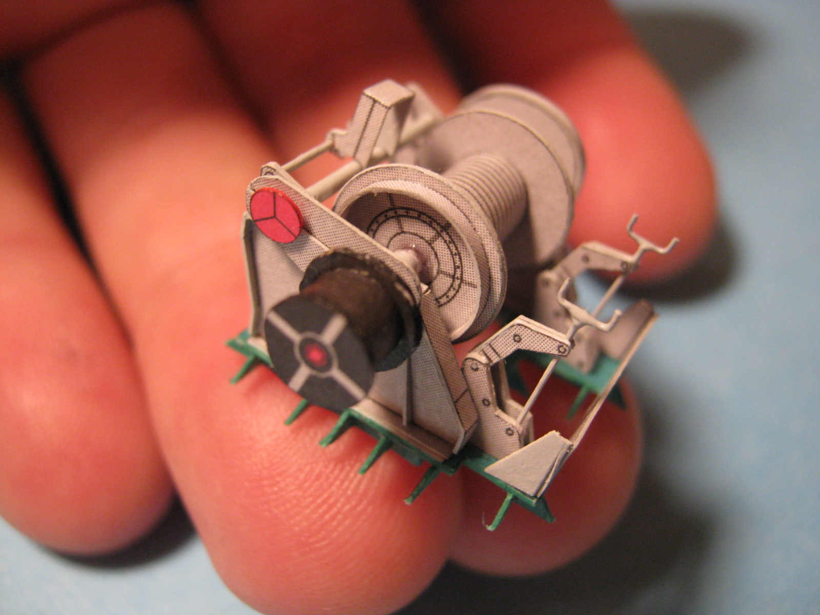 Skończyłem przed chwilą windę. Nie pokazywałbym tego specjalnie ale budowa tej windy trwała parę dni. Dla mnie to taki osobny model w modelu. Części od groma, bardzo maleńkie, lecz pasowanie tych części wzorowe. Jeśli coś nie pasowało lub jest krzywo to raczej z mojej winy. Teraz widzę na zdjęciach makro że jeszcze w niektórych miejscach muszę retuszem przelecieć.